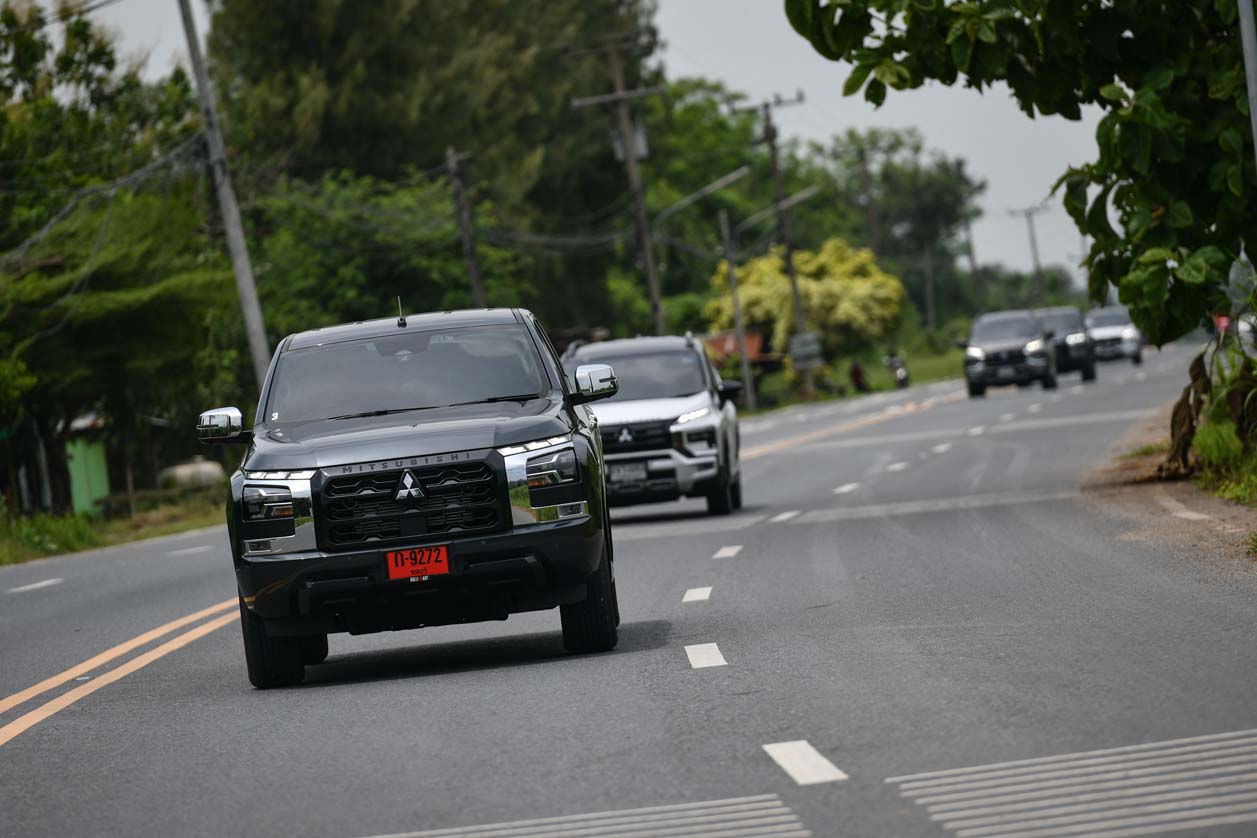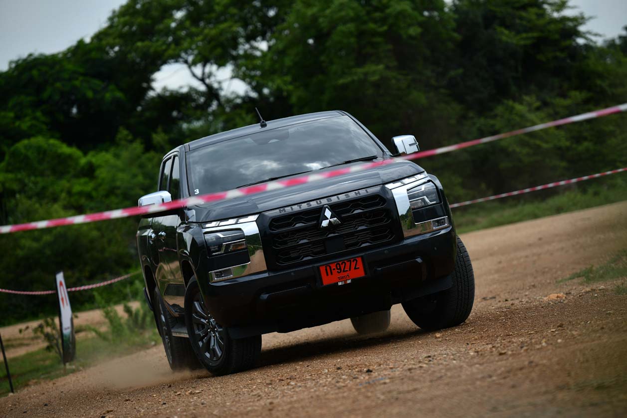 เราได้มีโอกาสขับไทรทันรุ่นใหม่บนเส้นทางไฮเวย์เรียบๆ และทางวิบากบนพื้นลูกรัง เราออกเดินทางจาก รร.แถบนนทบุรี มุ่งสู่วงแหวนกาญจนาภิเษก โดยมีจุดหมายแรกที่ร้านกาแฟแถวอยุธยาเพื่อทำการสลับผู้ขับขี่ ผมเป็นผู้ขับไม้นี้ ในช่วงแรกสภาพการจราจรในเมืองค่อนข้างหนาแน่นแต่ยังพอไหลไปได้เรื่อยๆ การใช้งานในเมืองมีความคล่องตัวพอสมควร จากตัวรถแบบยกสูงทำให้มีทัศนวิสัยที่ดีในการขับขี่ อัตราทดพวงมาลัยที่มีอัตราทดที่รวดเร็วขึ้น การหมุนพวงมาลัยขวาสุดไปซ้ายสุด จาก 3.7 รอบ ลดลงเหลือ 3.3 รอบ รัศมีวงเลี้ยวแคบสุด 6.2 ม. ทำให้เพิ่มความคล่องตัวและตอบสนองในการขับขี่ที่ดี การเปลี่ยนเลนทำได้รวดเร็วยิ่งขึ้นแม้ว่าตัวรถจะมีขนาดใหญ่ก็ตาม อัตราเร่งทำได้ดี ทันใจ มีการรอรอบบ้างเล็กน้อยในช่วงออกตัว แต่เมื่อรถลอยตัวแล้วการตอบสนองจะทำได้ดีและมีความต่อเนื่องของอัตราเร่ง