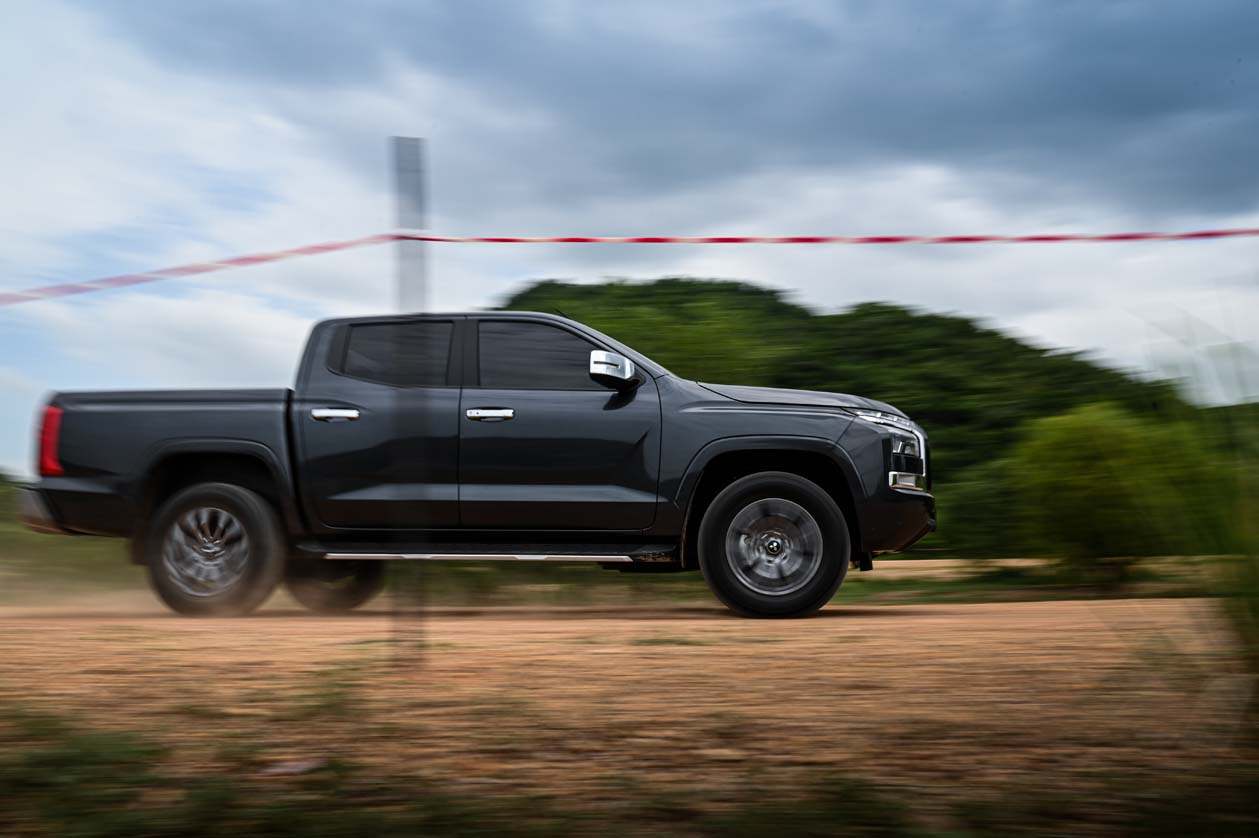 ในช่วงแรกเราได้วิ่งบนทางตรงยาวๆ บนพื้นลูกรังโดยใช้ความเร็วราวๆ 60 กม./ชม. การออกตัวแรงๆ เมื่อเกิดอาการล้อหมุนฟรี ระบบจะมีตัวช่วยที่เข้ามาทำงานอย่างรวดเร็วเพื่อลดอาการล้อฟรีที่อาจจะทำให้รถเกิดอาการเสียหลัก การวิ่งบนพื้นผิวไม่เรียบระบบรองรับสามารถซับแรงกระแทกได้เป็นอย่างดี ทำให้ผู้ขับและผู้โดยสารรู้สึกถึงความสบาย นุ่มนวล