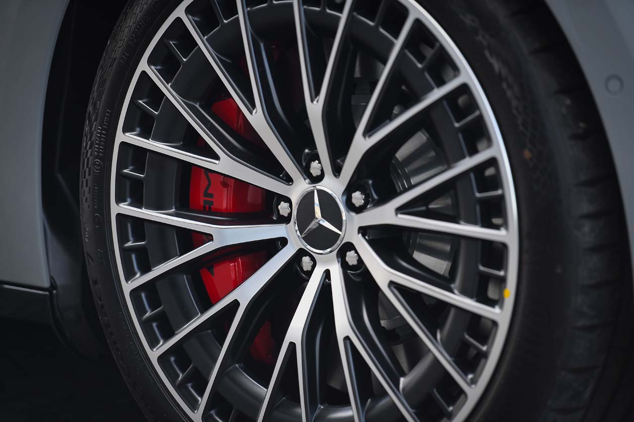 มาพร้อมการติดตั้งระบบเบรกแบบสมรรถนะสูงอย่าง AMG high-performance brake system ที่สามารถควบคุมได้อย่างแม่นยำทุกสภาวะการขับขี่ พร้อมจานเบรกที่มีช่องระบายอากาศบริเวณด้านข้างเพื่อลดอุณหภูมิของจานเบรกเมื่อมีการใช้งานในความเร็วสูง และตกแต่งคาลิเปอร์เบรกด้วยสีแดงตามแบบฉบับของ AMG โดยด้านหน้าเป็นคาลิเปอร์แบบ 6-piston และจานเบรกขนาด 415 x 33 มิลลิเมตร ส่วนด้านหลังเป็นแบบ single-piston และจานเบรกขนาด 378 x 22 มิลลิเมตร
