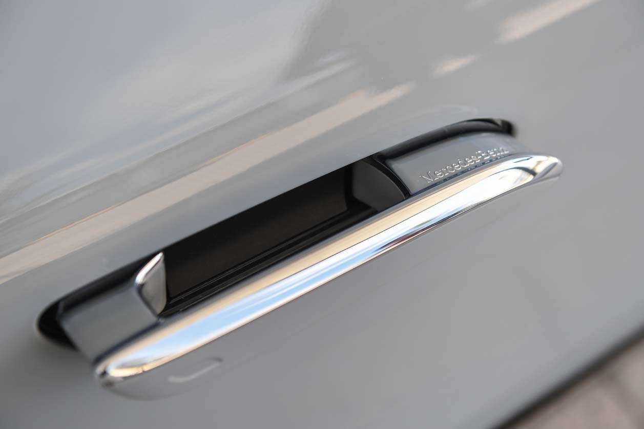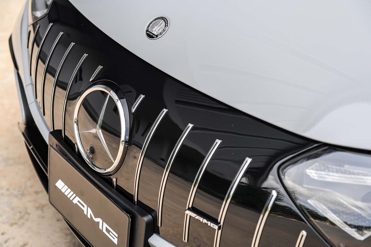 ในส่วนของดีไซน์ภายนอก โดดเด่นด้วยชุดแต่ง AMG Exterior Package เน้นตกแต่งอย่างหรูหราด้วยวัสดุสีดำ High-gloss มาพร้อมกับกระจังหน้าสีดำรูปแบบเฉพาะของ AMG และกันชนแบบสปอร์ต ติดตั้งไฟหน้า DIGITAL LIGHT แบบ ULTRA RANGE Highbeam ที่ส่องสว่างไกลกว่า 600 เมตร ด้านบนเป็นหลังคาพาโนรามิคซันรูฟ เปิด – ปิดได้ด้วยระบบไฟฟ้า (Panoramic sliding sunroof) ด้านล่างติดตั้งล้ออัลลอยด์ขนาด 21 นิ้ว แบบ AMG Y-Spoke wheel ทำงานผสานกับระบบกันสะเทือนและช่วงล่างแบบ AMG RIDE CONTROL+ ที่ถูกพัฒนาขึ้นโดย Mercedes-AMG รองรับการขับขี่ด้วยความเร็วสูงด้วยระบบบังคับเลี้ยวที่สามารถทำมุมเลี้ยวได้สูงสุดถึง 3.6 องศา สำหรับลดวงเลี้ยวให้แคบลง เพื่อความปลอดภัยขั้นสูงในการขับขี่