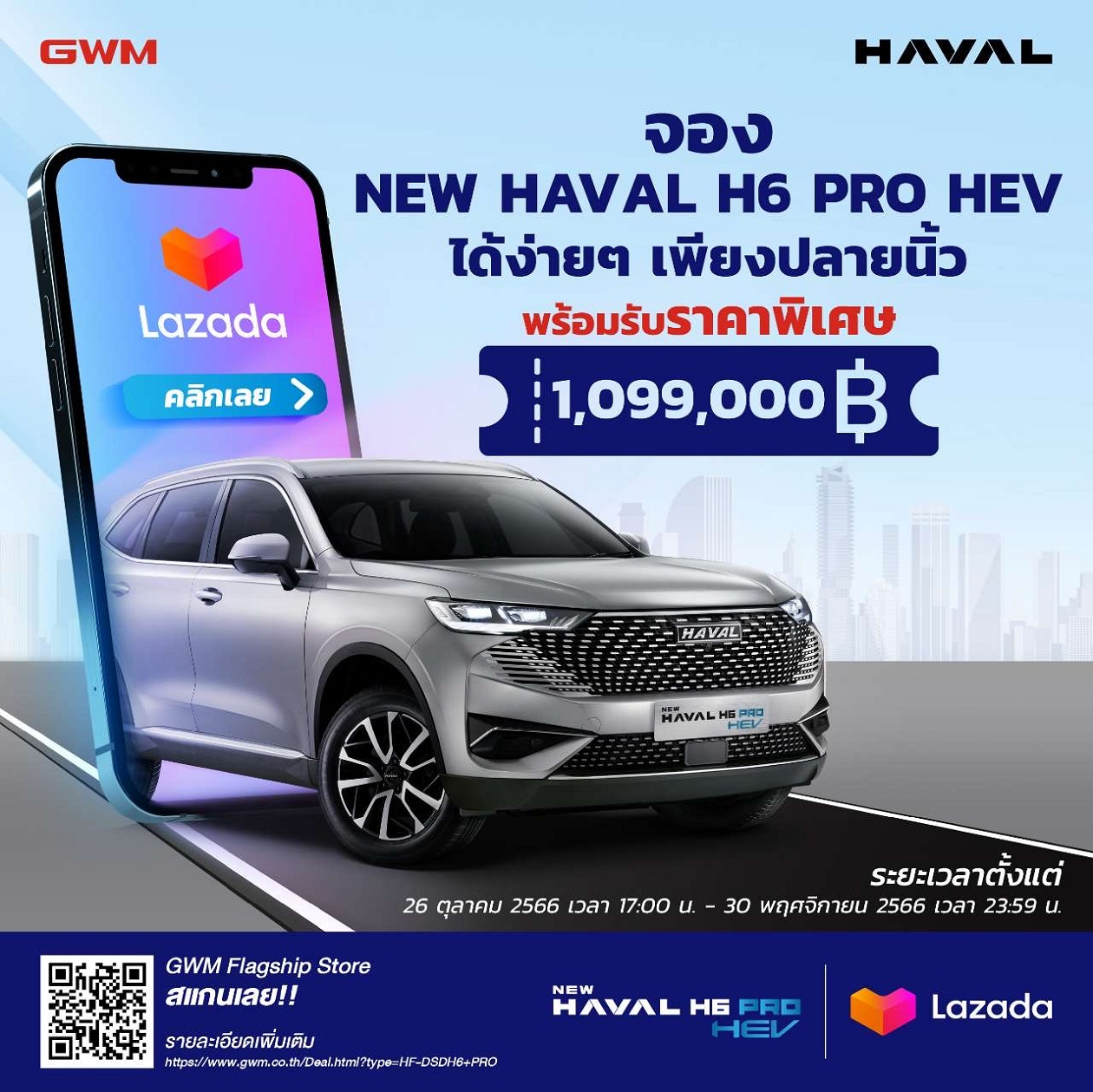 กรุงเทพฯ 26 ตุลาคม 2566 – เกรท วอลล์ มอเตอร์ ตอบรับคำเรียกร้องของแฟน ๆ ชาวไทย ตอกย้ำความมุ่งมั่นในการรับฟังเสียงของผู้บริโภค (User-centric) ส่ง NEW HAVAL H6 HEV รุ่น PRO ล็อตพิเศษสู่ตลาดยานยนต์ไทยอีกครั้งในราคาเปิดตัวพิเศษ 1,099,000 บาท จำนวนจำกัด โดยผู้สนใจสามารถสั่งซื้อคูปองมัดจำเพื่อสั่งซื้อรถรุ่นดังกล่าวผ่านทางแพลตฟอร์มของ Lazada ในช่วงแรกของการแนะนำสู่ตลาด ได้ตั้งแต่วันที่ 26 ตุลาคม 2566 เวลา 17.00 น. – 30 พฤศจิกายน 2566 เวลา 23.59 น.