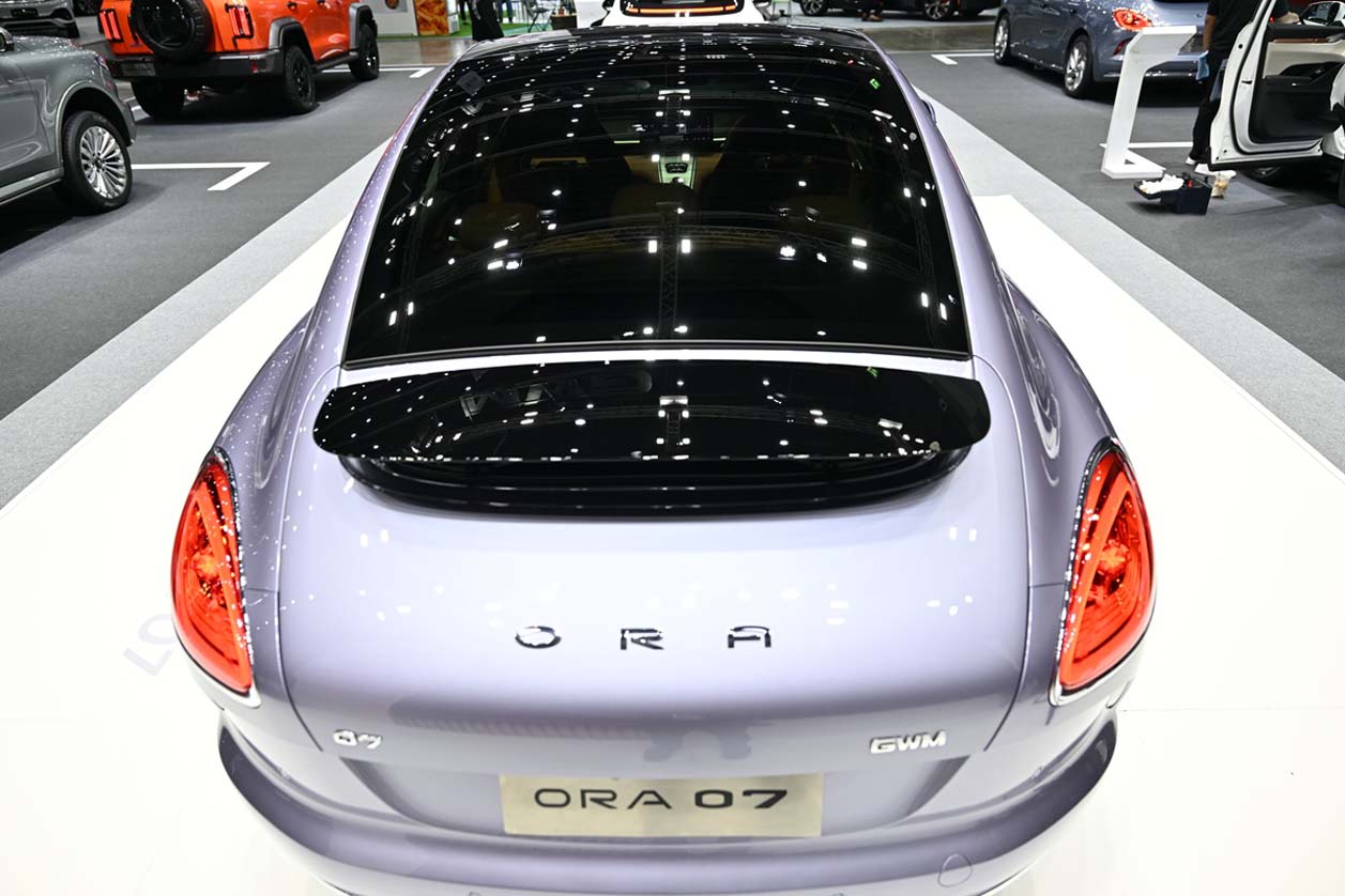 ภายในบูธของ เกรท วอลล์ มอเตอร์ ผู้ที่เข้าร่วมงานจะได้พบกับ ORA 07 รถยนต์ไฟฟ้าสปอร์ตคูเป้สมรรถนะสูง ผลิตภัณฑ์รุ่นเรือธงล่าสุดของ ORA ถึงสองสี ได้แก่ สีเทาจับคู่กับภายในสีดำ และ สีพิเศษสีม่วงที่มาพร้อมกับสีภายในสีน้ำตาล ซึ่งเป็นสีพิเศษของรุ่น PERFORMANCE รุ่นท็อปจาก ORA 07 เผยโฉมให้สาธารณชนได้ชมเป็นครั้งแรกภายในงาน ก่อนจะเปิดตัวและประกาศราคาอย่างเป็นทางการภายในเดือนพฤศจิกายนนี้ ORA 07 ได้รับการออกแบบอย่างละเอียดอ่อนด้วยแรงบันดาลใจจากความงามของธรรมชาติ ความพลิ้วไหวของสายน้ำผสมผสานกับความสปอร์ต ประกอบด้วยวัสดุคุณภาพชั้นเยี่ยมและผิวสัมผัสต่าง ๆ ที่ถูกคัดเลือกมาอย่างพิถีพิถัน รวมถึงเจ้าเหมียวไฟฟ้า ORA Good Cat รถยนต์รุ่นยอดนิยม ขวัญใจชาวไทย ที่โดดเด่นด้วยการออกแบบภายใต้คอนเซ็ปต์ Retro Futuristic มาพร้อมกับระยะทางการขับขี่สูงสุดถึง 500 กิโลเมตรต่อการชาร์จหนึ่งครั้ง (มาตรฐาน NEDC)