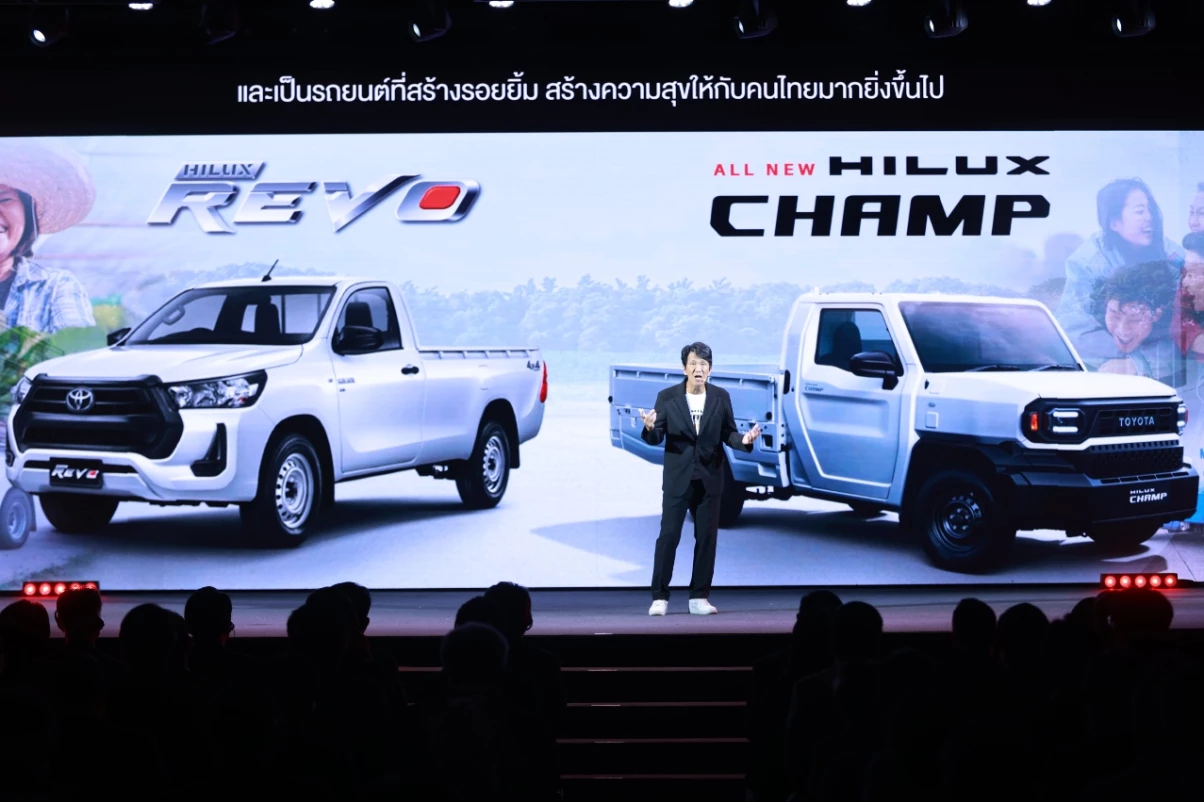 “HILUX CHAMP จะเป็นที่หนึ่งในใจลูกค้าชาวไทย และเป็นรถยนต์ที่สร้างรอยยิ้ม สร้างความสุขให้กับคนไทยมากขึ้นเรื่อยๆ ดังที่ทุกท่านทราบดีว่าตลาดรถกระบะในปีนี้มีแนวโน้มชะลอตัวตามสภาพเศรษฐกิจ เราจึงอยากกระตุ้นตลาดรถกระบะด้วย HILUX CHAMP ร่วมกับคนไทยอีกครั้ง ภายใต้การพัฒนาเพื่อแสดงความมุ่งมั่นของเรา เพื่อสื่อถึงความขอบคุณของเราแก่คนไทยทุกคนในฐานะรถกระบะมหาชน เราต้องการที่จะสร้างอนาคตที่ดีร่วมกันกับลูกค้าของเรา จึงอยากกระชับความสัมพันธ์อันดีระหว่างคนไทยกับโตโยต้า โดยแสดงออกถึงความชื่นชมซึ่งกันและกัน” มร.ยามาชิตะ กล่าวด้วยความภาคภูมิใจ