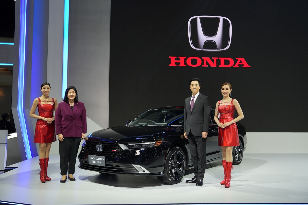 สำหรับยนตรกรรมไฮไลต์ที่จัดแสดงภายในงาน ได้แก่ ยนตรกรรมไลน์อัป e:HEV นำโดย ฮอนด้า แอคคอร์ด อี:เอชอีวี ใหม่ สปอร์ตพรีเมียมแฟลกชิปซีดาน โดดเด่นด้วยดีไซน์สปอร์ตสะท้อนความหรูหราทั้งภายนอกและภายใน สมรรถนะการขับขี่ทรงพลังด้วยระบบฟูลไฮบริด e:HEV ในทุกรุ่นย่อย ตอบสนองทันใจด้วยการทำงานของมอเตอร์ไฟฟ้ากำลังสูง 2 ตัว ในระบบเกียร์ E-CVT ที่ให้แรงบิดสูงสุด 335 นิวตัน-เมตร และแบตเตอรี่ลิเธียม-ไอออนที่มีประสิทธิภาพสูง ผสานการทำงานกับเครื่องยนต์ขนาด 2.0 ลิตร Direct Injection ที่ได้รับการพัฒนาใหม่ มอบพลังการขับเคลื่อนที่ไร้กังวลในทุกเส้นทาง และประหยัดน้ำมันสูงถึง 25 กม./ลิตร