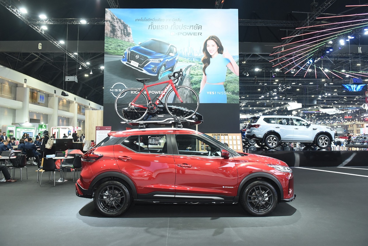 นิสสันโชว์รถยนต์ครบ 4 รุ่นนำโดย นิสสัน คิกส์ อี-พาวเวอร์ ออเทค คอมแพคเอสยูวีสไตล์สปอร์ตพรีเมียม นิสสัน เทอร์ร่า ในชุดตกแต่งใหม่เสริมความสปอร์ต นิสสัน อัลเมร่า ซีดานสุดปราดเปรียว นิสสัน นาวารา กระบะยอดนิยม และนิสสัน จีที-อาร์ ซูเปอร์สปอร์ตคาร์ทรงพลัง