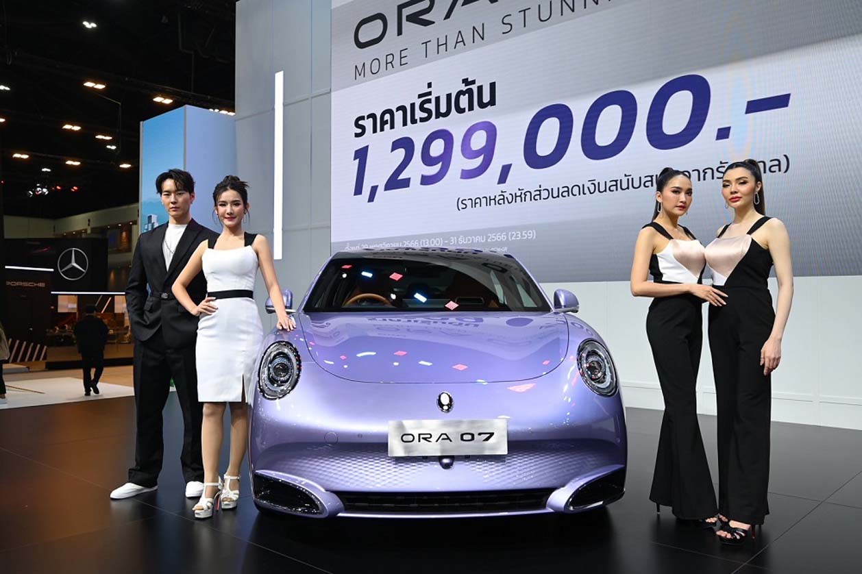 โดยภายในงาน Motor Expo 2023 ครั้งนี้ เกรท วอลล์ มอเตอร์ ได้กลับมาปลุกกระแสยานยนต์ไฟฟ้าในประเทศไทยอีกครั้งด้วยการเปิดตัว ORA 07 อย่างเป็นทางการ ที่มาพร้อมกับตัวเลือก 2 รุ่นย่อย ได้แก่รุ่น LONG RANGE ในราคา 1,299,000 บาท และรุ่น PERFORMANCE ราคา 1,499,000 บาท โดยตอนนี้รถยนต์ ORA 07 ได้เดินทางมาถึงท่าเรือประเทศไทยเป็นที่เรียบร้อยแล้ว และพร้อมทยอยส่งมอบให้แก่ลูกค้าชาวไทยตั้งแต่เดือนธันวาคมเป็นต้นไป โดย เกรท วอลล์ มอเตอร์ จะทำการส่งมอบรถยนต์ล็อตแรกให้กับลูกค้าภายในงาน Motor Expo ในวันที่ 10 ธันวาคม 2566 นี้ สำหรับแฟน ๆ ที่สนใจอยากจับจองเป็นเจ้าของและสัมผัสประสบการณ์ขับขี่รถยนต์ไฟฟ้าที่ล้ำสมัย ORA 07 สามารถลงทะเบียนจองสิทธิ์ผ่านช่องทางแอปพลิเคชัน GWM และเว็บไซต์ www.gwm.co.th และผู้ที่สนใจสามารถทดลองขับ ORA 07 ได้ที่ GWM Partner Store ทั่วประเทศ นอกจากนี้ เจ้าเหมียวไฟฟ้า ORA Good Cat ก็ยังแรงไม่มีแผ่ว ได้รับความสนใจจากลูกค้าชาวไทยอย่างล้นหลาม กับโอกาสสุดท้ายของการเป็นเจ้าของภายใต้นโยบายการสนับสนุนการใช้รถยนต์ไฟฟ้า 3.0 ของภาครัฐ