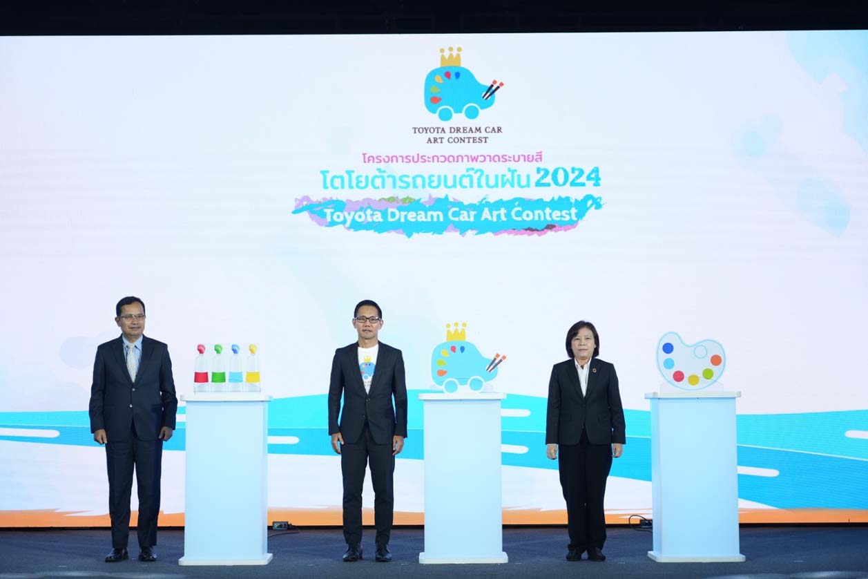 นายศุภกร รัตนวราหะ รองกรรมการผู้จัดการใหญ่ บริษัท โตโยต้า มอเตอร์ ประเทศไทย จำกัด พร้อมด้วย ดร.วีระ แข็งกสิการ ผู้ตรวจราชการกระทรวงศึกษาธิการ และ คุณสุนีย์ ศรีสง่าตระกูลเลิศ ผู้ตรวจราชการ กระทรวงพัฒนาสังคมและความมั่นคงของมนุษย์ ร่วมเปิดโครงการประกวดวาดภาพระบายสี “โตโยต้า รถยนต์ในฝัน” “TOYOTA Dream Car Art Contest 2024” ชิงถ้วยพระราชทาน สมเด็จพระกนิษฐาธิราชเจ้า กรมสมเด็จพระเทพรัตนราชสุดาฯ สยามบรมราชกุมารี เมื่อวันที่ 8 ธันวาคม ศกนี้ ณ TOYOTA ALIVE บางนา