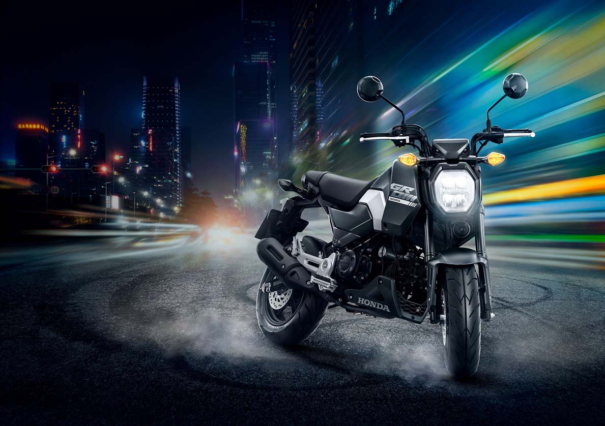 New Honda Grom บิดสนุกเร้าใจด้วยขุมพลังเครื่องยนต์ 4 จังหวะ ขนาด 125 ซีซี ระบบหัวฉีด PGM-FI ส่งกำลังด้วยระบบคลัทช์มือที่ประสานความแรงกับชุดเกียร์ 5 สปีด ให้สมรรถนะสูงสุดในคลาส ควบคุมง่าย คล่องตัว โช้กหน้าแบบหัวกลับดูดซับแรงกระแทกได้อย่างไร้กังวล ล้อแม็กซ์ดีไซน์ใหม่พร้อมยางหน้ากว้างสไตล์รถบิ๊กไบค์ เสริมความปลอดภัยด้วยระบบดิสก์เบรกหน้า-หลัง และระบบเบรกแบบ ABS ที่มาพร้อม G-Sensor ป้องกันอาการท้ายปัดหรือท้ายยกเมื่อเบรกกะทันหัน