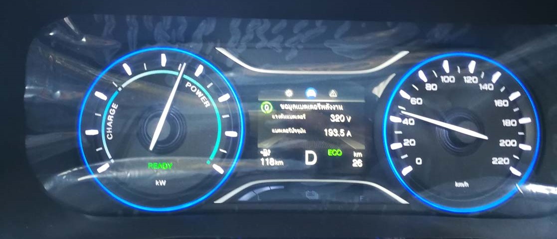 ภายในห้องโดยสารออกแบบเน้นความเรียบง่าย ใช้งานสะดวกสบาย ชุดมาตรวัดเรือนไมล์แบบไฟฟ้าแบบเป็นมาตรวัดทรงกลม 2 ฝั่ง โดยทางด้านขวาจะเป็นมาตรวัดความเร็ว ส่วนทางด้านซ้ายจะเป็นมาตรวัดการใช้พลังงานไฟฟ้า และการรีชาร์จไฟ ตรงกลางเป็นจอ TFT ที่บ่งบอกสถานการณ์ทำงานต่างๆ ของตัวรถ ไม่ว่าจะเป็นการวัดแรงดันไฟฟ้าของแบตเตอรี่ระบบขับเคลื่อน, มาตรวัดระยะทางการเดินทาง-เวลาในการเดินทาง, มาตรวัดแรงดันลมยาง-อุณหภูมิลมยาง, การใช้พลังงานไฟฟ้า kW/100 กม., ความเร็วแบบดิจิตอล, อุณหภูมิภายนอกห้องโดยสาร, แรงดันเบตเตอรี่ลูกเล็ก 12V, ความเร็วรอบของมอเตอร์ x100 รอบต่อนาที(อันนี้น่าสนใจ และชอบมากๆ)