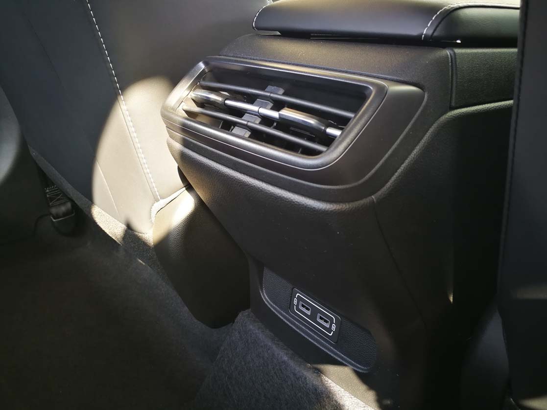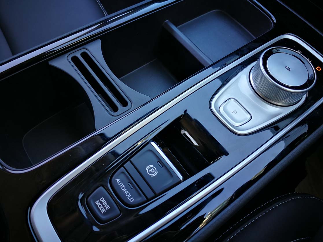 สวิทช์เลือกระบบขับเคลื่อนเป็นแบบปุ่มหมุน R-N-D โดยปุ่ม P จะแยกออกมา การใช้งานแทบจะไม่มีอาการดีเลย์ในการใช้งานเลย ใกล้ๆ กัน เป็นชุดสวิทช์เบรคมือไฟฟ้า, Auto Brake Hold พร้อมกับ Drive Mode ซึ่งเลือกโหมดการขับขี่ได้ถึง 3 โหมดด้วยกัน กล่องเก็บของบริเวณเท้าแขนมีขนาดพอเหมาะ ทางด้านหลังเป็นช่องแอร์ 2 ช่อง พร้อมกับช่องเสียบชาร์จไฟอีก 2 ช่องแบบ USB Type A เพิ่มความสะดวกสบายให้กับผู้โดยสารยามเดินทางได้เป็นอย่างดี