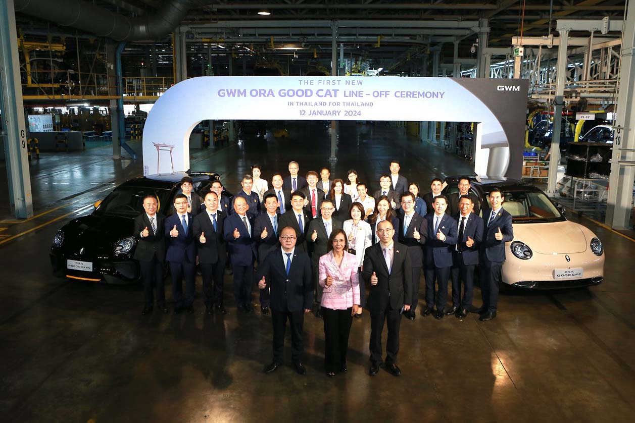 โดยพิธีเปิดสายการผลิต New GWM ORA Good Cat ได้รับเกียรติจาก ฯพณฯ พิมภัทรา วิชัยกุล รัฐมนตรีว่าการกระทรวงอุตสาหกรรม ในการกล่าวเปิดงาน พร้อมด้วยนายนฤตม์ เทอดสถีรศักดิ์ เลขาธิการคณะกรรมการส่งเสริมการลงทุน รวมถึงข้าราชการระดับสูงจากหน่วยงานที่เกี่ยวข้อง ร่วมกันเป็นสักขีพยานในการส่งรถยนต์ New GWM ORA Good Cat คันแรกออกจากสายการผลิตจากโรงงานอัจฉริยะ เกรท วอลล์ มอเตอร์ แมนูแฟคเจอริ่ง (ประเทศไทย) เตรียมพร้อมส่งมอบให้กับแฟน ๆ ชาวไทย โดยมีคณะผู้บริหารของเกรท วอลล์ มอเตอร์ นำโดย มร. ไคล์ด เฉิง ประธาน นายวุฒิกร สุริยะฉันทนานนท์ รองประธานฝ่ายการตลาด เกรท วอลล์ มอเตอร์ ภูมิภาคอาเซียน และ นายณรงค์ สีตลายน กรรมการผู้จัดการ มร. ไมเคิล ฉง ผู้จัดการทั่วไป เกรท วอลล์ มอเตอร์ (ประเทศไทย) มร. เกร็ก ลี รองประธานบริหาร ฝ่ายการผลิตในโรงงาน ภูมิภาคอาเซียน และ นายอำนาจ แสงจันทร์ รองประธานฝ่ายการผลิต เกรท วอลล์ มอเตอร์ แมนูแฟคเจอริ่ง (ประเทศไทย) ร่วมให้การต้อนรับ