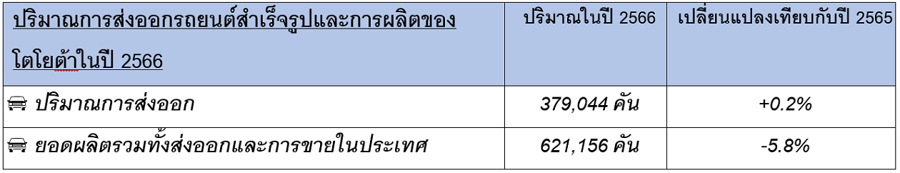 ปริมาณการส่งออกรถยนต์และการผลิตของโตโยต้าในปี 2566