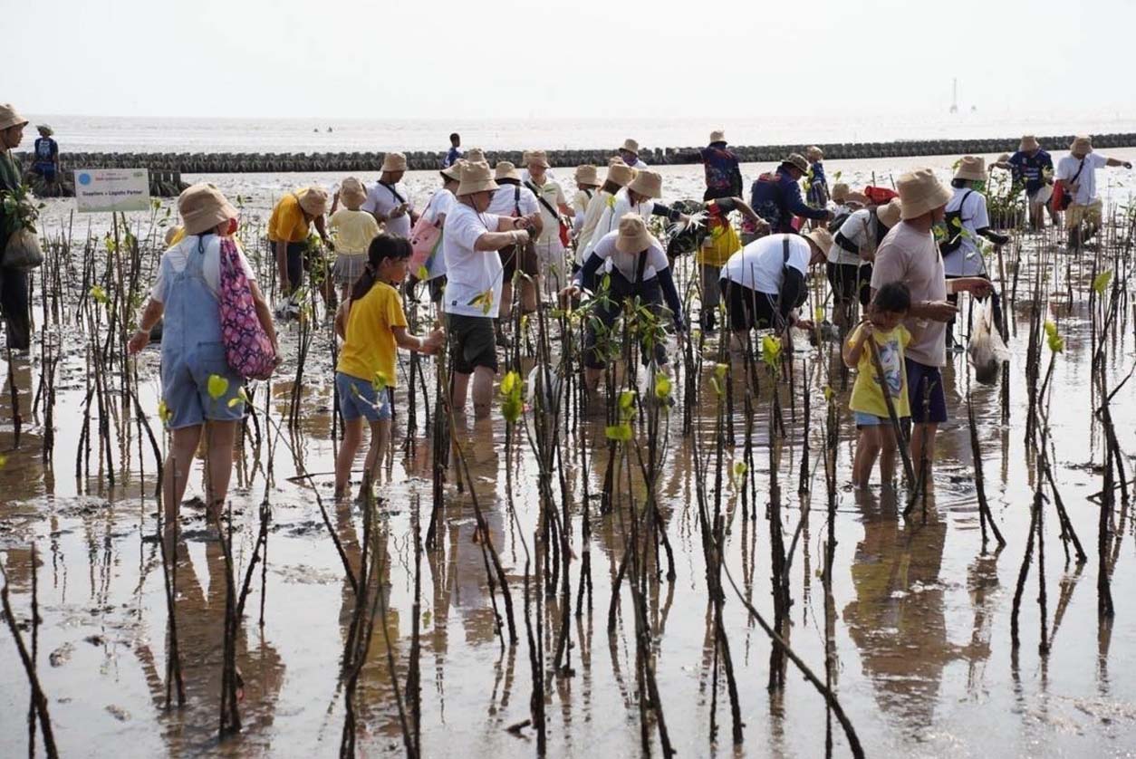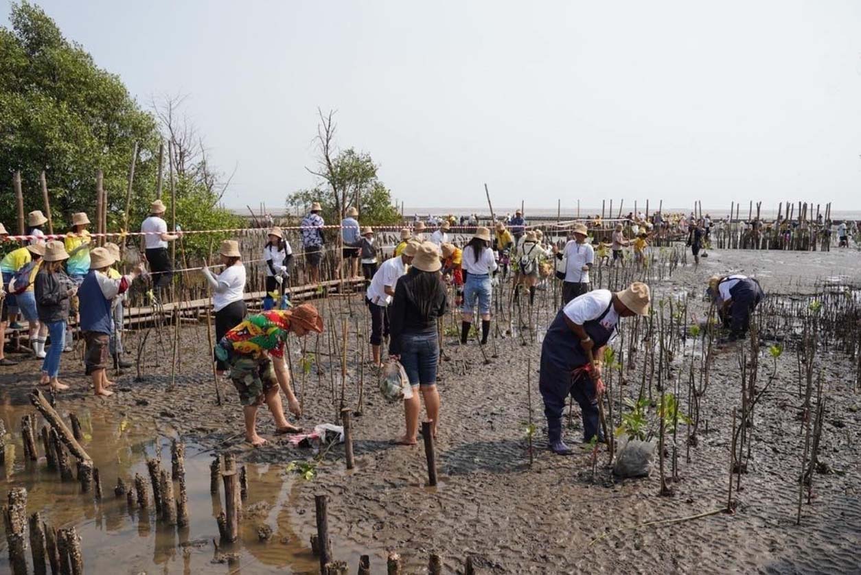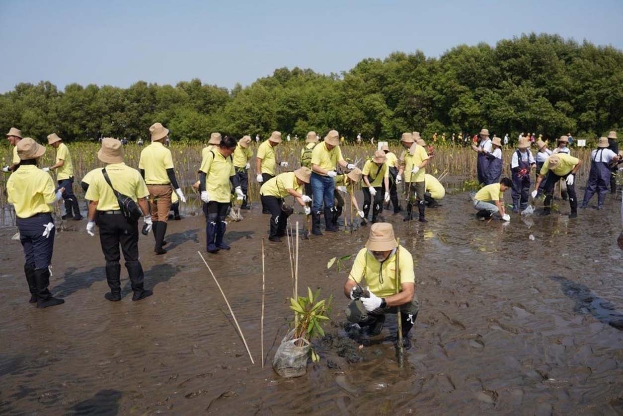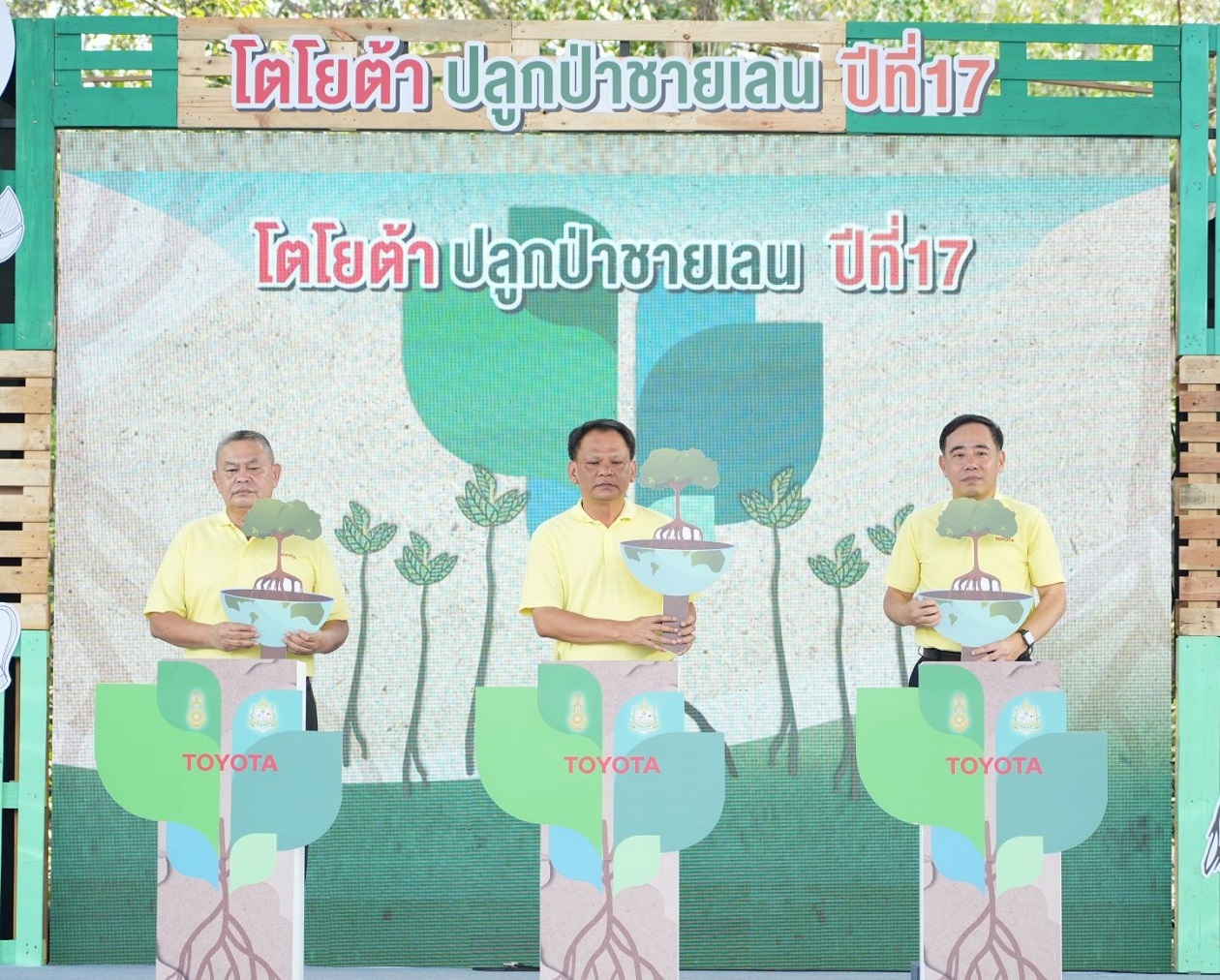 นายวัฒนา เจริญจิตร นายอำเภอเมืองสมุทรปราการ พลตรี ธวัช ชาลีรัตน์ รองเจ้ากรมพลาธิการทหารบก และนายสมคิด ประดิษฐกำจรชัย รองกรรมการผู้จัดการใหญ่ บริษัท โตโยต้า มอเตอร์ ประเทศไทย จำกัด พร้อมด้วยคณะผู้บริหารระดับสูงของโตโยต้า บริษัทในเครือฯ ผู้ผลิตชิ้นส่วนโตโยต้า ผู้แทนจำหน่ายโตโยต้า ตลอดจนหน่วยงานพันธมิตรทั้งภาครัฐ ภาคเอกชน และประชาชน ร่วมปลูกพันธุ์ไม้ชายเลนจำนวน 50,000 ต้น เพื่อเป็นส่วนหนึ่งในการมุ่งสู่เป้าหมาย สร้างความเป็นกลางทางคาร์บอน ภายใต้กิจกรรม “โตโยต้าปลูกป่าชายเลนปีที่ 17” ณ สถานตากอากาศบางปู จังหวัดสมุทรปราการ เมื่อวันที่ 3 มีนาคม 2567