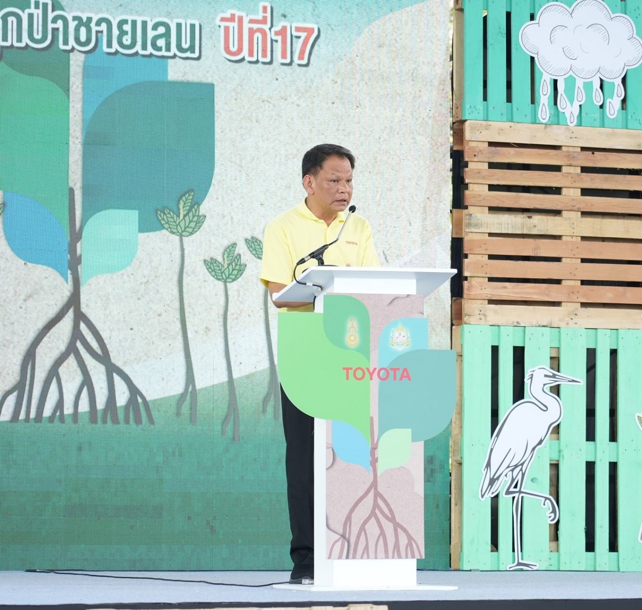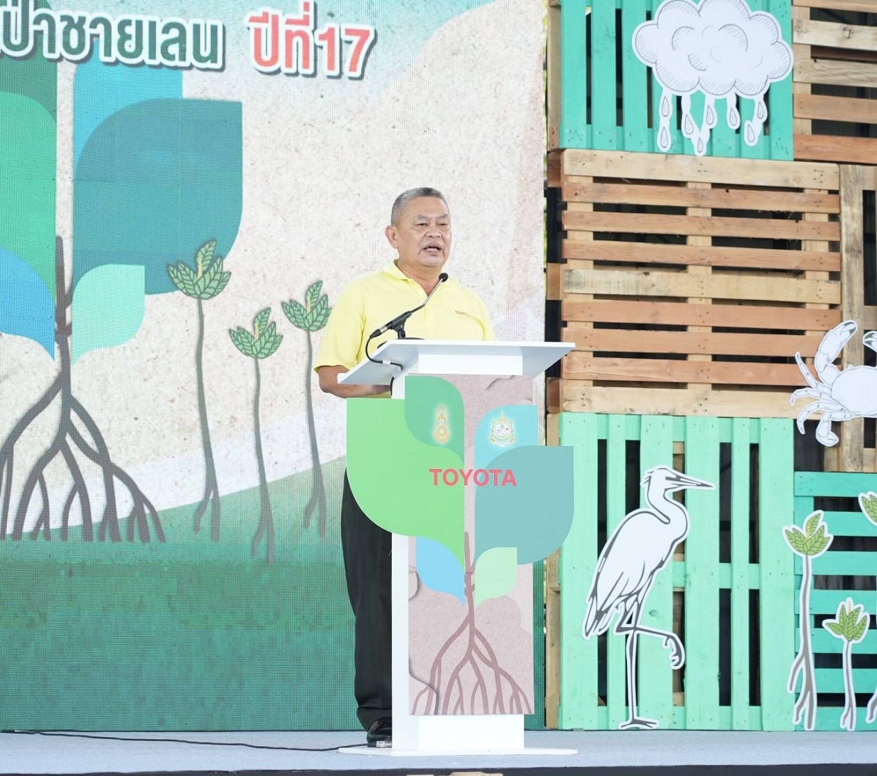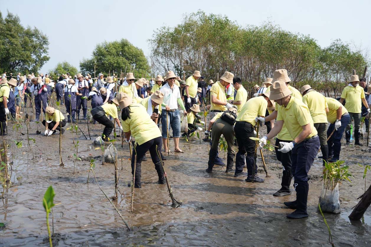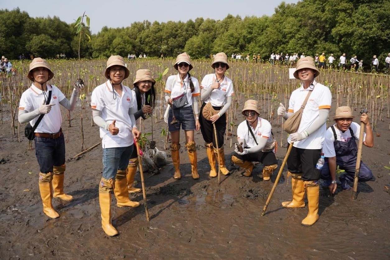 นายวัฒนา เจริญจิตร นายอำเภอเมืองสมุทรปราการ พลตรี ธวัช ชาลีรัตน์ รองเจ้ากรมพลาธิการทหารบก และนายสมคิด ประดิษฐกำจรชัย รองกรรมการผู้จัดการใหญ่ บริษัท โตโยต้า มอเตอร์ ประเทศไทย จำกัด พร้อมด้วยคณะผู้บริหารระดับสูงของโตโยต้า บริษัทในเครือฯ ผู้ผลิตชิ้นส่วนโตโยต้า ผู้แทนจำหน่ายโตโยต้า ตลอดจนหน่วยงานพันธมิตรทั้งภาครัฐ ภาคเอกชน และประชาชน ร่วมปลูกพันธุ์ไม้ชายเลนจำนวน 50,000 ต้น เพื่อเป็นส่วนหนึ่งในการมุ่งสู่เป้าหมาย สร้างความเป็นกลางทางคาร์บอน ภายใต้กิจกรรม “โตโยต้าปลูกป่าชายเลนปีที่ 17” ณ สถานตากอากาศบางปู จังหวัดสมุทรปราการ เมื่อวันที่ 3 มีนาคม 2567