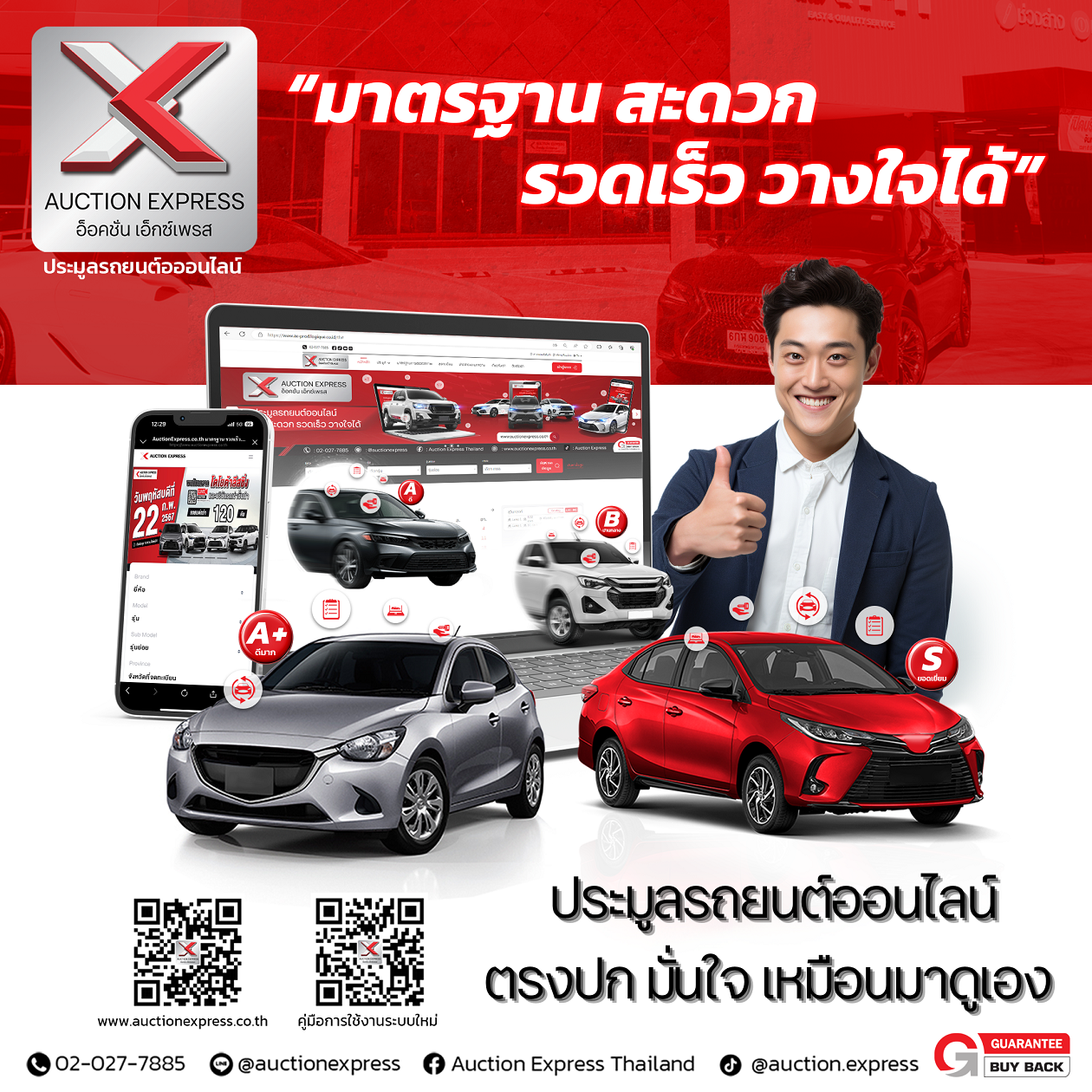 นายรุ่งโรจน์ ขันชะลี ประธานบริษัท อ็อคชั่น เอ็กซ์เพรส จำกัด ได้แนะนำระบบประมูลใหม่ในรูปแบบแพลตฟอร์มที่ปรับปรุง และพัฒนาขึ้นใหม่ ของบริษัท อ็อคชั่น เอ็กซ์เพรส บริษัทประมูลรถยนต์ออนไลน์ ที่พร้อมให้บริการและรุกตลาดรถยนต์ใช้แล้วด้วยระบบประมูลออนไลน์อันทันสมัย รวดเร็ว สะดวกสบาย ยิ่งขึ้น ในการรองรับพฤติกรรมผู้บริโภคที่ปัจจุบันหันมาใช้แพลตฟอร์มออนไลน์มากขึ้น รวมทั้งเป็นการตอบสนองความต้องการของผู้ประกอบการ ที่นิยม ความสะดวก และความเชื่อมั่น ทั้งนี้ ด้วยความถูกต้อง แม่นยำของการตรวจประเมินสภาพรถ ของ Auction Express จะช่วยยกระดับมาตรฐานการประมูลรถยนต์ในประเทศ และด้วยมาตรฐานของการตรวจสภาพรถที่มีความถูกต้อง แม่นยำ ครอบคลุมทุกจุด ช่วยให้ผู้ประกอบการสามารถใช้เวลาในการทำธุรกิจได้มีประสิทธิภาพมากยิ่งขึ้น Auction Express พร้อมแล้วกับการพัฒนาอย่างต่อเนื่องเพื่อขับเคลื่อนวงการประมูลรถยนต์มือสองของไทยด้วยความโปร่งใสและน่าเชื่อถือบนนวัตกรรมระบบประมูลออนไลน์ ที่ทันสมัย สะดวก ทุกที่ทุกเวลา วางใจได้