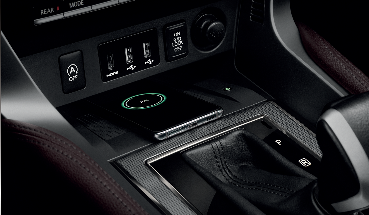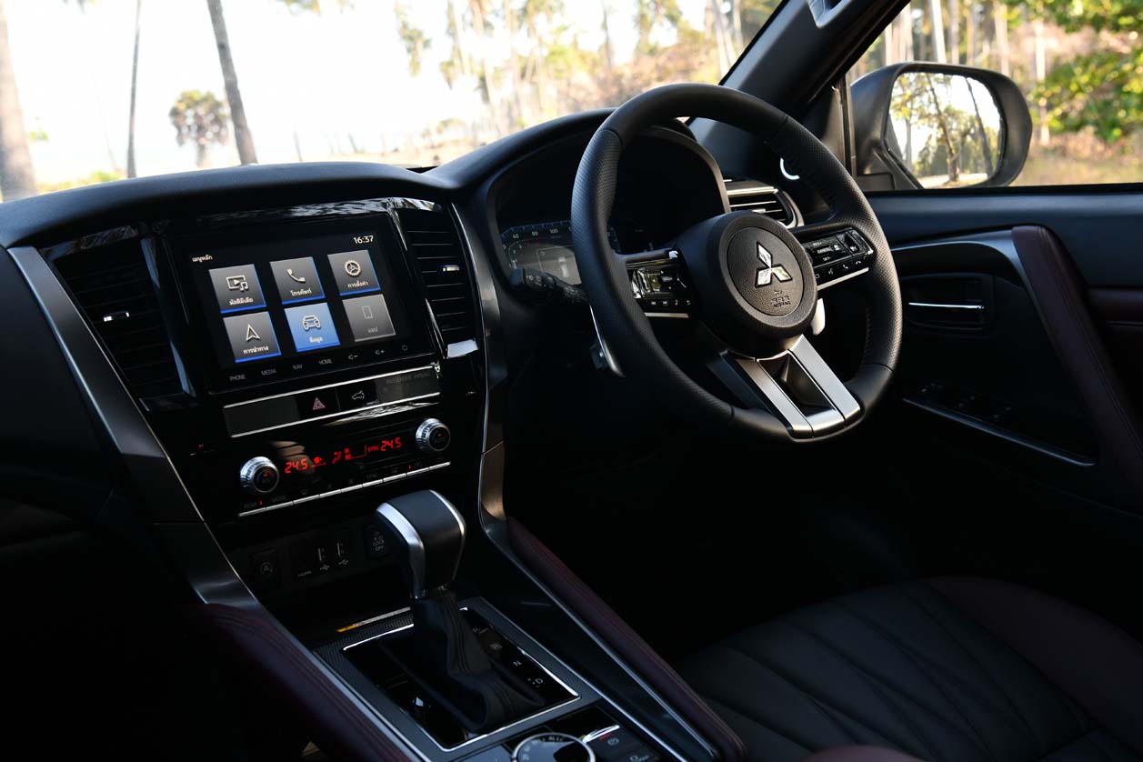 อุปกรณ์อำนวยความสะดวก ที่เติมความรื่นรมย์ภายในห้องโดยสาร ประกอบด้วย จอแสดงผลการขับขี่ใหม่แบบ Full Digital ขนาด 8 นิ้ว คมชัด ใช้งานง่าย ระบบเครื่องเสียง Mitsubishi Power Sound System ชุดเครื่องเสียงระดับพรีเมียม 8 ลำโพง พร้อมพาวเวอร์แอมป์ ให้เสียงชัดรอบทิศทาง หน้าจอบนเพดานสำหรับผู้โดยสารตอนหลัง ขนาด 12.1 นิ้ว พร้อมรีโมท หูฟังอินฟราเรด และเชื่อมต่อ HDMI และ USB หน้าจอระบบสัมผัส 8 นิ้ว รองรับการเชื่อมต่อผ่านสมาร์ทโฟน (SDA) Apple Carplay & Android Auto และระบบเชื่อมต่อ Bluetooth แฮนด์ฟรีและรองรับระบบสั่งการด้วยเสียง ระบบเบรกมือไฟฟ้าและระบบหน่วงแรงเบรกอัติโนมัติ (Brake Auto Hold) และประตูท้ายไฟฟ้าพร้อมระบบแฮนด์ฟรี ที่สามารถเปิด-ปิดได้ 5 รูปแบบ
