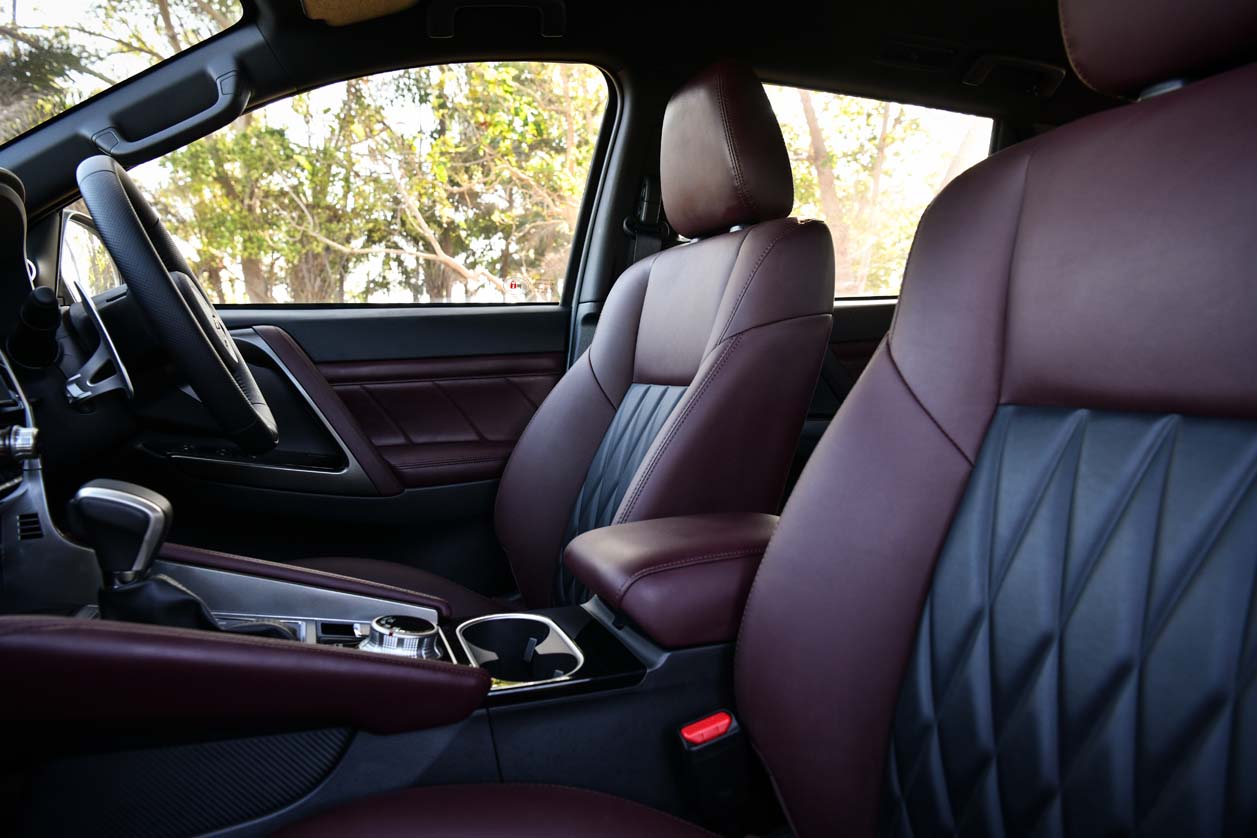 ภายในห้องโดยสารยกระดับความสะดวกสบายและความทันสมัยด้วยการตกแต่งใหม่แบบสีทูโทน ดำ-แดงเบอร์กันดี สลับการตกแต่งด้วยสีไทเทเนียมรมดำบริเวณขอบประตูและรอบช่องแอร์ พวงมาลัย มัลติ-ฟังก์ชัน หุ้มหนังรูปแบบใหม่ จับกระชับมือมากยิ่งขึ้นพร้อม Paddle Shift และระบบฟอกอากาศบริสุทธิ์ในห้องโดยสาร nanoeX™ และผู้โดยสารยังได้รับความสะดวกสบายอย่างเต็มที่ด้วยเบาะหนังสังเคราะห์ออกแบบลาย Diamond Cut พร้อมคุณสมบัติสะท้อนความร้อน (Heat Guard) เบาะคู่หน้าปรับระดับด้วยไฟฟ้า 8 ทิศทาง พร้อมระบบดันหลังปรับด้วยไฟฟ้าด้านเบาะผู้ขับขี่