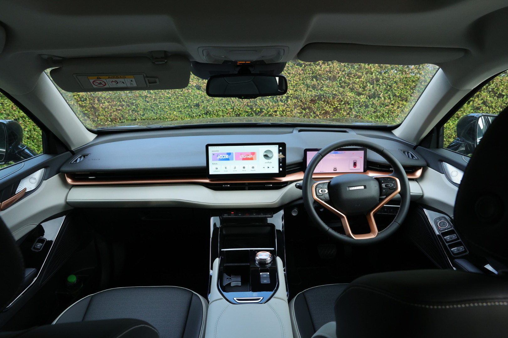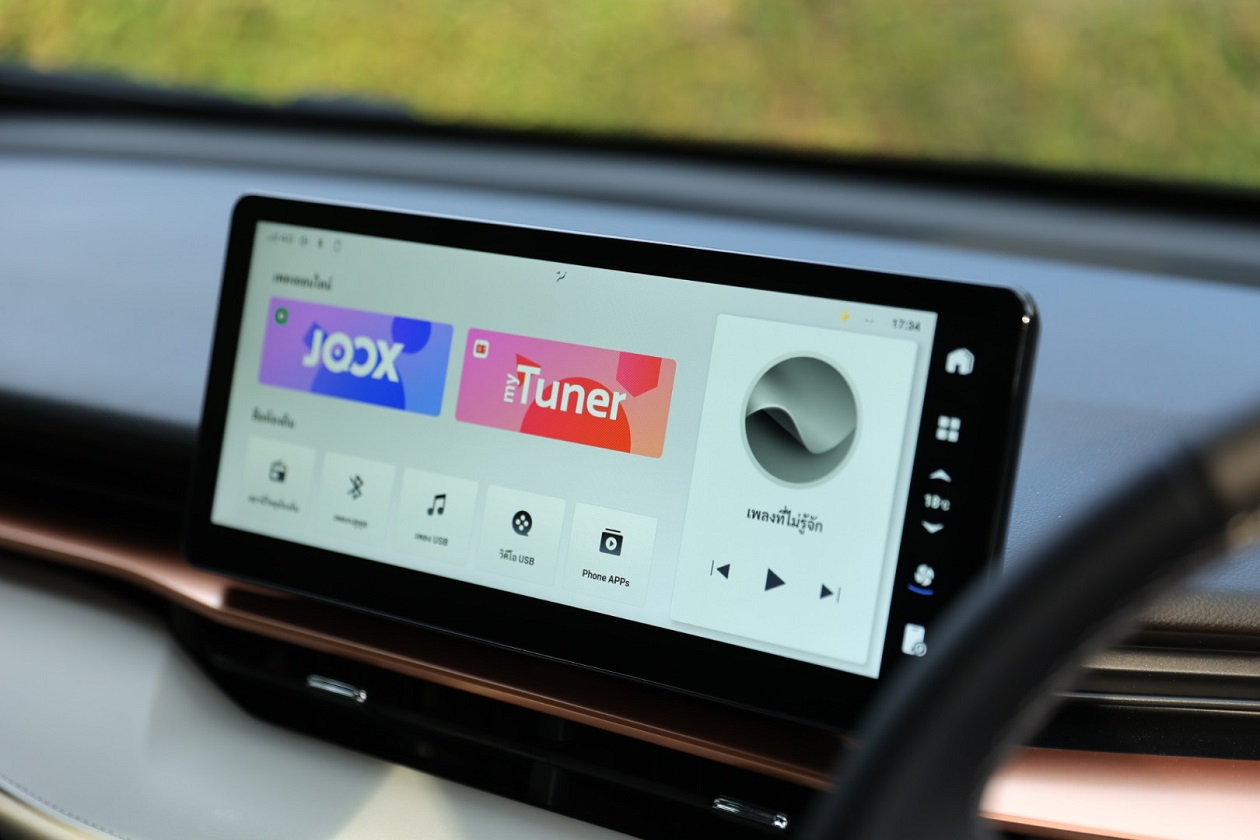 จออินโฟเทนเมนท์ตรงกลางขนาด 12 นิ้ว เต็มเปี่ยมไปด้วยฟังก์ชั่นการใช้งานต่างๆ อาทิ กล้อง 360 องศา, เชื่อมต่อ Apple Car Play-Android Auto แบบไร้สาย MP3, JOOX พร้อมเนวิเกเตอร์ที่สามารถบอกตำแหน่ง Point of Interest ทั้งร้ายอาหาร ปั๊มน้ำมัน ฯลฯ รวมไปการปรับโหมดการขับขี่ต่างๆ ของตัวรถ ปรับโหมดการขับขี่ Normal, Eco, Sport และ EV Mode