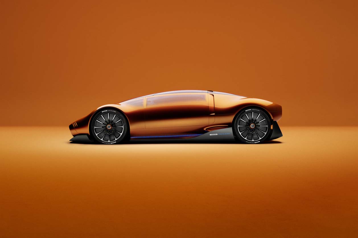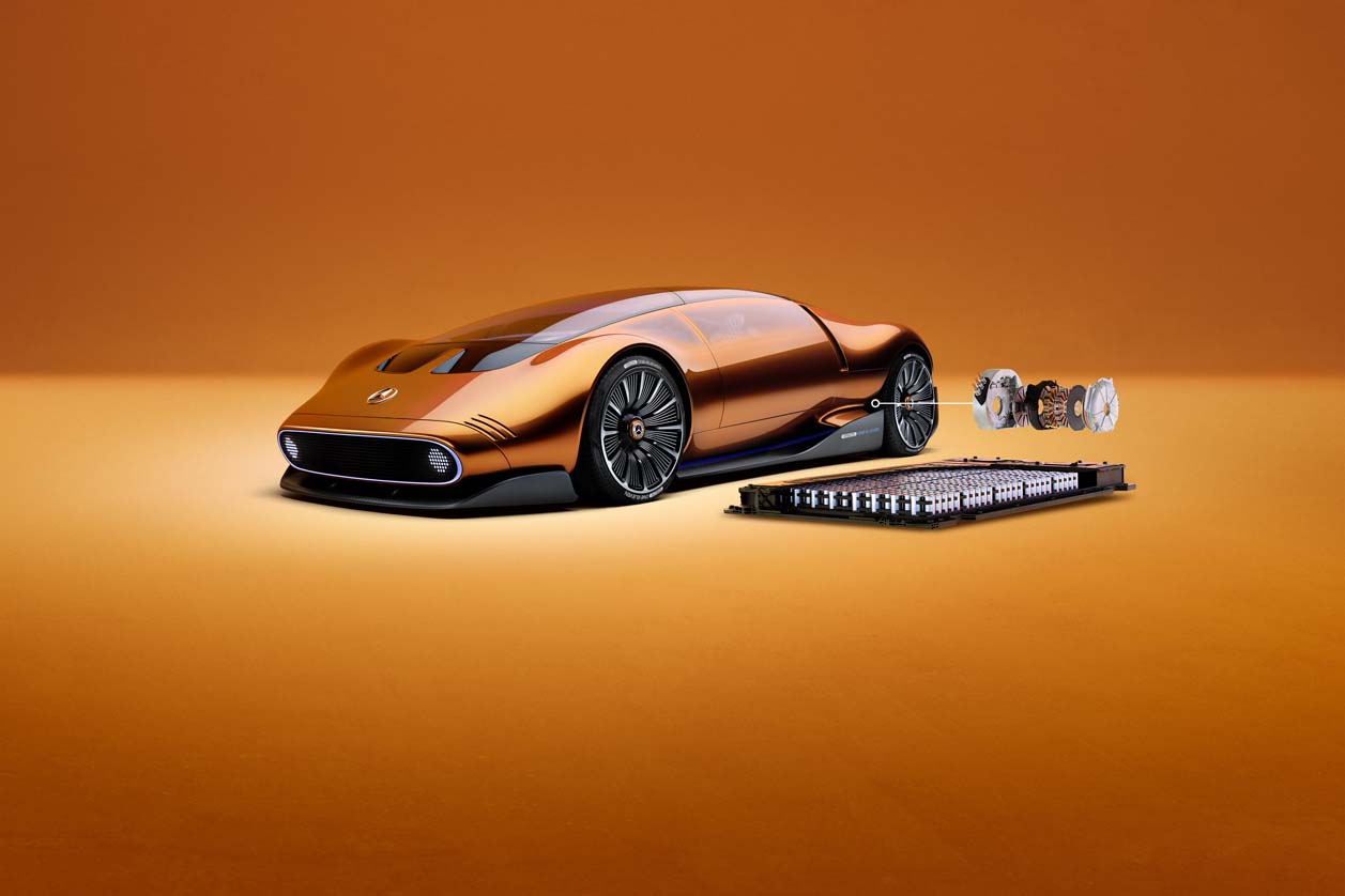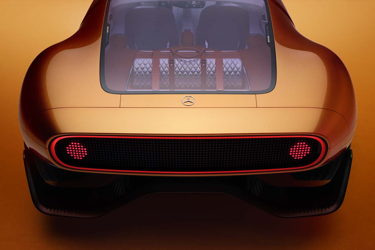 รถยนต์สปอร์ตพลังงานไฟฟ้า 100% ที่ได้รับแรงบันดาลใจโดยตรงจาก C 111 โมเดลในตำนานของยุคปี 1969 มาพร้อมความโดดเด่นเหนือจินตนาการด้วยการออกแบบสุดล้ำสมัย แสดงถึงดีไซน์อันเหนือระดับแบบ one-bow concept เน้นความสง่างามของเส้นสายตัวรถและความโค้งมน เกิดเป็นนิยามใหม่ของศิลปะแห่งการออกแบบ พร้อมดึงดูดสายตาผู้คนบนท้องถนนด้วยการกลับมาของประตูปีกนกสีส้มทองแดงอันเป็นเอกลักษณ์ สื่อถึงการเปิดประตูสู่อนาคตแห่งความหรูหราที่แฝงไปด้วยความสปอร์ต โดดเด่นด้วยกระจังหน้ารูปตัว U และการติดตั้งไฟหน้าและไฟท้ายอันตระการตา ผสานการทำงานเข้ากับนวัตกรรมการขับเคลื่อนด้วยไฟฟ้าแบบทรงพลังพิเศษในชุดมอเตอร์ Axial-flux ที่สร้างโดยบริษัท YASA ผู้ผลิตมอเตอร์ไฟฟ้าสัญชาติอังกฤษ ที่อยู่เบื้องหลังมอเตอร์พละกำลังสูงใน Mercedes-AMG พร้อมนำเสนออีกระดับของประสิทธิภาพและการประหยัดพลังงานในการขับเคลื่อนยานยนต์