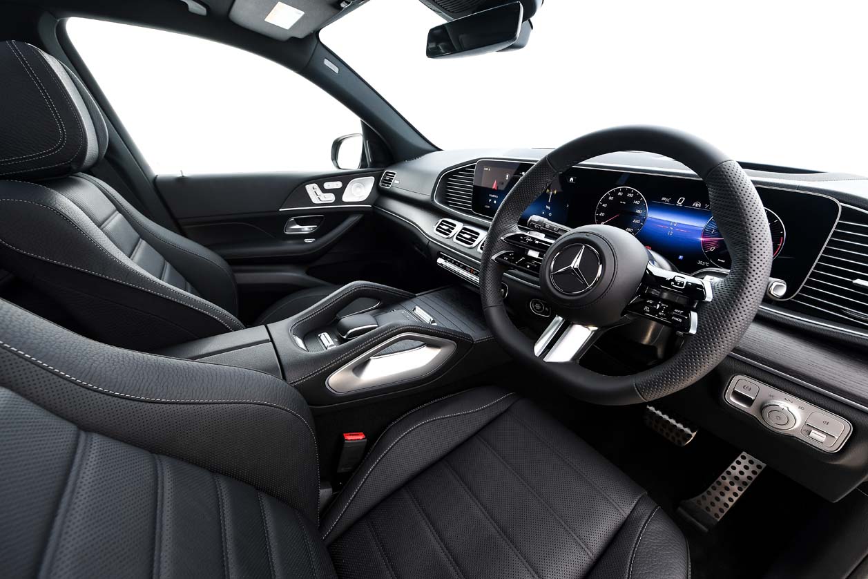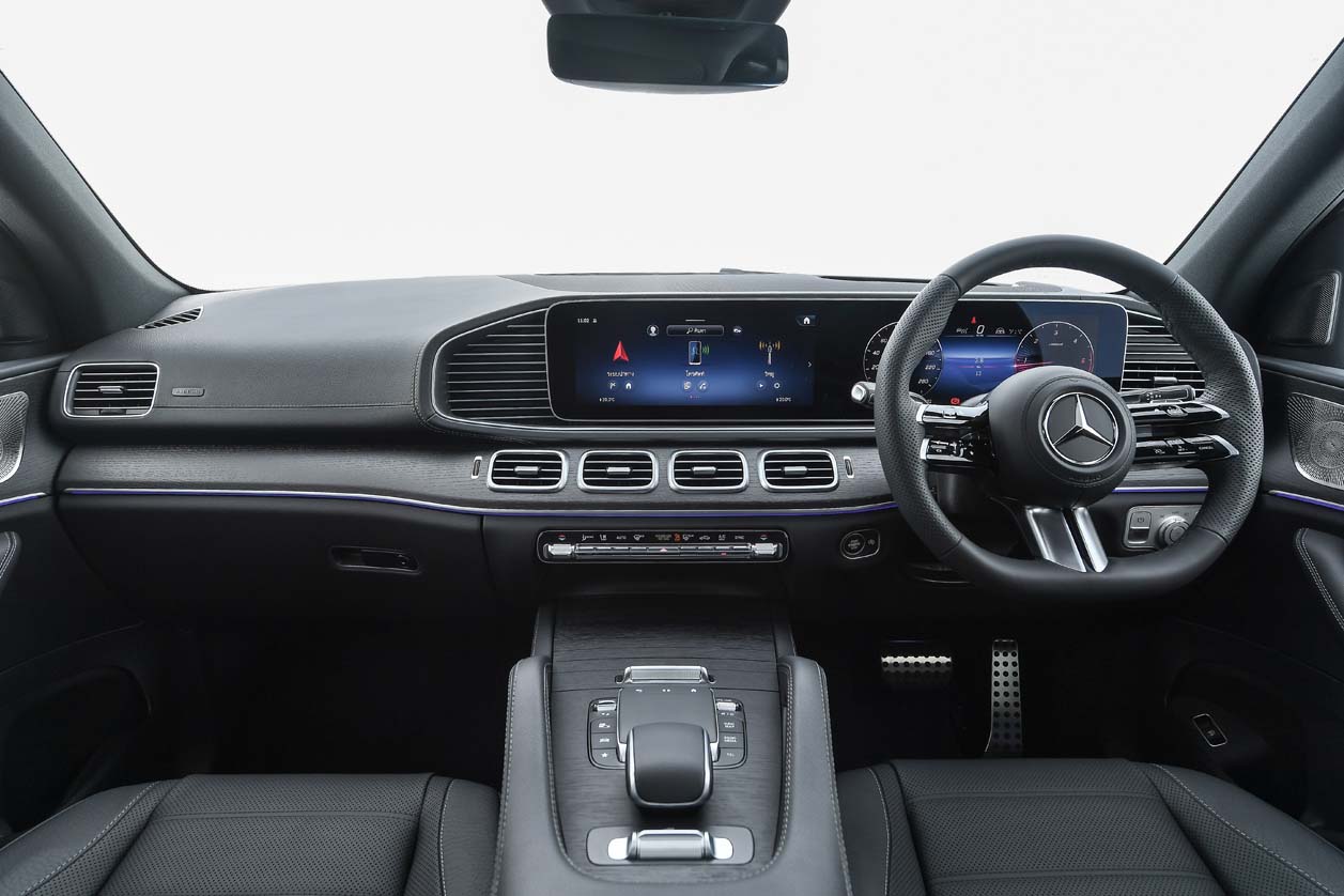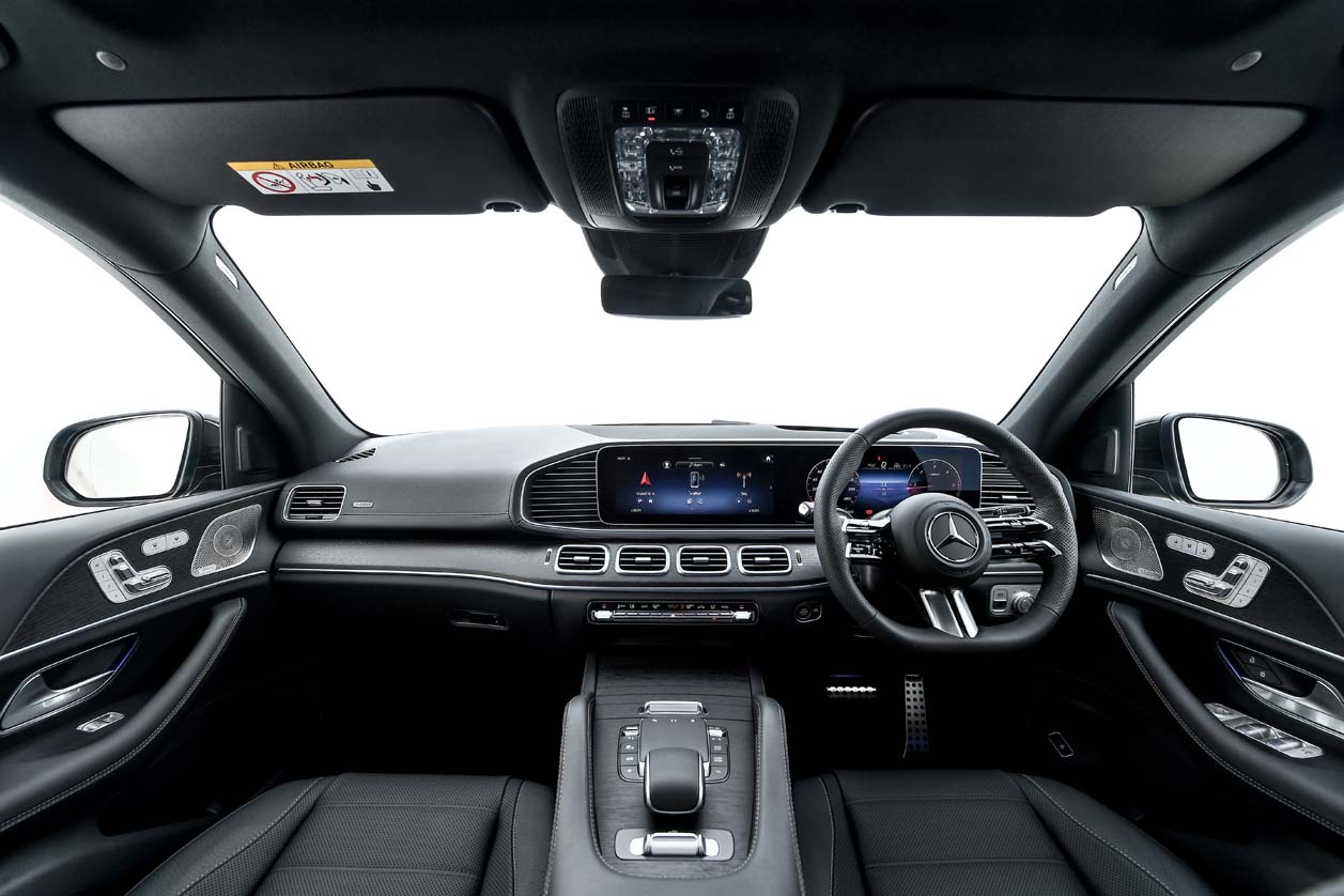 ภายในห้องโดยสารมีการตกแต่งแบบ AMG interior package ที่ถอดแบบความลักชัวรี่มาจากรุ่น S-Class ไม่ว่าจะเป็น หน้าจอขนาด 12.3 นิ้ว จำนวน 2 จอเชื่อมต่อกัน พร้อมจอแสดงผลแบบ Head-up display ให้การแสดงผลที่คมชัดในทุกสภาพแสง พวงมาลัยมัลติฟังก์ชั่นแบบสปอร์ตหุ้มหนัง Nappa และเบาะหนังที่ติดตั้งระบบนวดแบบ MULTI CONTOUR SEAT ช่วยให้ค้นหาตำแหน่งการนั่งได้อย่างเหมาะสมตามหลักสรีรศาสตร์ ให้ผู้ขับขี่และผู้โดยสารผ่อนคลายจากความเมื่อยล้าขณะเดินทาง นอกจากนี้ ยังมาพร้อมเทคโนโลยีที่ติดตั้งมาอย่างครบครัน อาทิ ระบบชาร์จโทรศัพท์มือถือแบบไร้สาย ระบบฟอกอากาศแบบ ENERGIZING AIR CONTROL with ENERGIZING Package แอร์อัตโนมัติ THERMOTRONIC 5 โซน พร้อมระบบปรับสมดุลอากาศแบบ AIR BALANCE package ฯลฯ