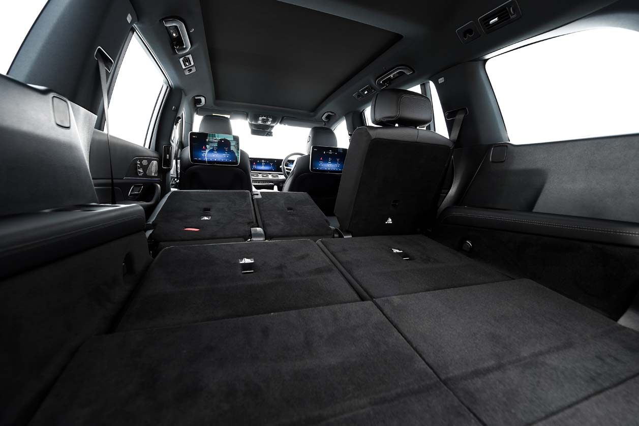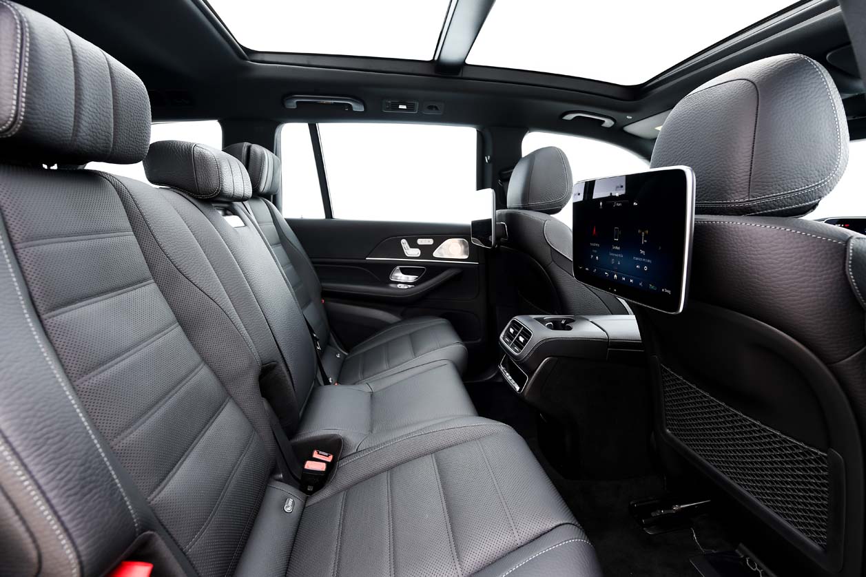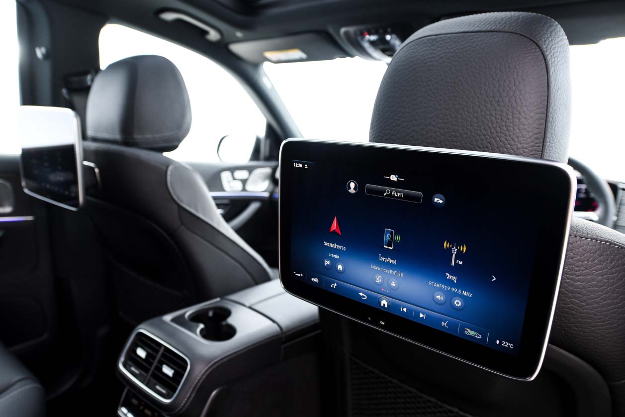 ความโดดเด่นอีกด้านหนึ่งของ GLS 450 d 4MATIC AMG Dynamic คือการก้าวสู่ยุคใหม่แห่งความบันเทิงระดับไฮเอนด์ โดยการส่งมอบประสบการณ์สุดเพลิดเพลินให้กับผู้โดยสารด้านหลังโดยเฉพาะ มาพร้อมระบบปฏิบัติการ MBUX7 หน้าจอระบบสัมผัสขนาด 11.6 นิ้ว จำนวน 2 จอ หูฟังแบบไร้สาย 2 ชุด และแท็บเล็ตบริเวณเบาะโดยสารตอนหลัง ให้ผู้โดยสารด้านหลังสามารถท่องโลกอินเทอร์เน็ตได้อย่างไร้รอยต่อ ทั้งยังสามารถรับชมภาพยนตร์ความละเอียดสูง และฟังเพลงด้วยระบบเสียงรอบทิศทางแบบ Burmester® 3D surround sound system ทรงพลังด้วยลำโพงคุณภาพสูง 13 ตัว รอบห้องโดยสารที่มีกำลังขับขนาด 590 วัตต์ และเทคโนโลยี Dolby Atmos® ให้ความรื่นรมย์ราวกับนั่งฟังเพลงในสตูดิโอระดับเฟิร์สคลาส โดยสามารถปรับให้เหมาะสมกับผู้โดยสารด้านหน้าและด้านหลังอย่างลงตัว