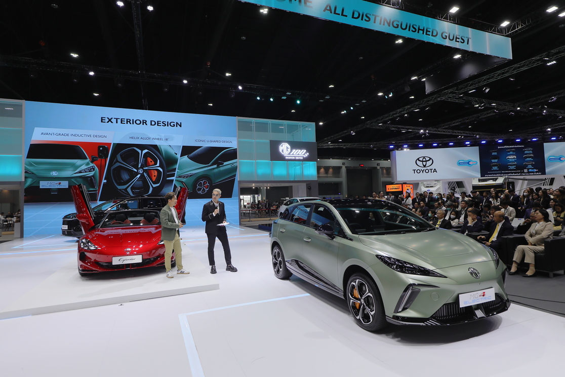 กรุงเทพฯ – 25 มีนาคม 2567 - บริษัท เอสเอไอซี มอเตอร์ – ซีพี จำกัด และ บริษัท เอ็มจี เซลส์ (ประเทศไทย) จำกัด ผู้ผลิตและผู้จำหน่ายรถยนต์เอ็มจีในประเทศไทย ฉลองครบรอบ 100 ปี พร้อมเดินหน้าสร้างสีสันวงการยานยนต์ไทย ส่งยนตรกรรมใหม่เปิดตัวต่อเนื่อง นำโดย NEW MG CYBERSTER สปอร์ตโรดสเตอร์ไฟฟ้าแบบเปิดประทุน 2 ที่นั่ง รุ่นพวงมาลัยขวา ที่เปิดตัวอย่างเป็นทางการครั้งแรกในภูมิภาคอาเซียน พร้อมด้วย แฮทช์แบ็คไฟฟ้าที่ขับสนุกและเร้าใจอย่าง NEW MG4 ELECTRIC นำโดยรุ่น XPOWER และอีก 2 รุ่นที่ผลิตภายในประเทศ กับ รุ่น STANDARD RANGE และ รุ่น LONG RANGE บิ๊กเซอร์ไพรส์ ที่เปิดโอกาสให้คนไทยได้สัมผัสและเป็นเจ้าของก่อนใคร กับ E-MPV ไซส์กลาง อย่าง NEW MG MAXUS 7 และชูความเป็นสปอร์ต คูเป้ซีดานที่แตกต่างกว่าใครกับ NEW MG5 PRO โฉมล่าสุด มาพร้อมห้องโดยสารที่กว้างที่สุดในเซกเมนต์ และการออกแบบโฉมใหม่ที่ดูโฉบเฉี่ยวกว่าเดิม พร้อมให้คนไทยพบกับ 4สุดยอดไฮไลท์เด่นและยนตรกรรมทุกรูปแบบการขับเคลื่อนจาก เอ็มจีในงาน บางกอก อินเตอร์เนชั่นแนล มอเตอร์โชว์ ครั้งที่ 45 (Motor Show 2024) ระหว่างวันที่ 27 มีนาคม ถึงวันที่ 7 เมษายนนี้ ณ บูธ เอ็มจี หมายเลข A8 อาคารชาเลนเจอร์ 3 อิมแพ็ค เมืองทองธานี