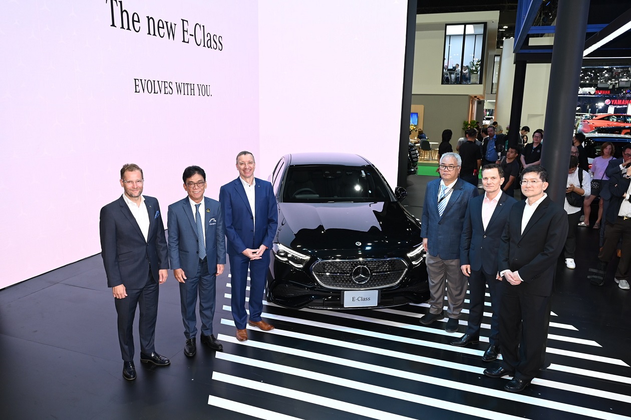 เมอร์เซเดส-เบนซ์ (ประเทศไทย) สะท้อนการเป็น “ICON OF INSPIRATION.” ยกทัพยนตรกรรมกว่า 20 รุ่น จัดแสดงในงานบางกอก อินเตอร์เนชั่นแนล มอเตอร์โชว์ ครั้งที่ 45 (Motor Show 2024) เปิดตัวยนตรกรรมล่าสุด 5 รุ่น นำโดย “The new E-Class: Launch Edition” Business Saloon ที่มาเซอร์ไพรส์กลางงานพร้อมเปิดจองเป็นครั้งแรก มาด้วยกัน 2 รุ่นย่อย ได้แก่ E 220 d AMG Line ราคาจำหน่าย 3,990,000 บาท และ E 350 e AMG Dynamic ราคาจำหน่าย 4,250,000 บาท