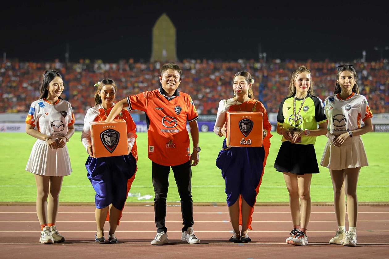 นายธีร์ เพิ่มพงศ์พันธ์ รองประธานบริหารอาวุโส บริษัท มาสด้า เซลส์ (ประเทศไทย) จำกัด แมตช์นี้นับเป็นนัดสำคัญยิ่งต่อการตัดสินแชมป์ประจำฤดูกาล มีแฟนบอลหลั่งไหลมาจากทั่วสารทิศเข้าชมการแข่งขันในแมตช์นี้มากสุดถึง 24,556 คน ซึ่งทีมสวาทแคทยังคงครองสถิติอันดับหนึ่งที่มีผู้เข้าชมเกมมากที่สุด วันนี้ทุกคนในทีมต่างร่วมแรงร่วมใจกันลุกขึ้นสู้อีกครั้ง ด้วยพลังศรัทธาและเชื่อมั่นในสปิริตความเป็นนักสู้ของทุกคนในทีม ซึ่งเป็น ดีเอ็นเอเฉกเช่นเดียวกับชาวมาสด้า เราไม่เคยยอมแพ้ต่ออุปสรรคและเชื่อมั่นในสปิริตความเป็นนักสู้ พร้อมฟันฝ่าอุปสรรคต่างๆ มากว่า 100 ปี และอยู่เคียงข้างคนไทยมาถึง 73 ปี และเราจะยังคงอยู่เคียงข้างสังคมไทยตลอดไป มาสด้าหวังเป็นอย่างยิ่งว่าจะมีส่วนช่วยขับเคลื่อนวงการฟุตบอลไทยไปสู่การพัฒนาที่ยั่งยืน ฟุตบอลเปรียบเสมือนสะพานเชื่อมความสัมพันธ์อันดีของผู้คน ไม่ใช่เฉพาะกับชาวโคราชเท่านั้น แต่รวมถึงคนไทยทั้งประเทศ