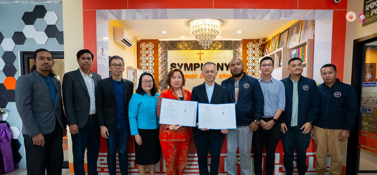 คุณศรีจันทร์ จริงจิตร (ที่ 5 จากซ้าย) ประธานกรรมการบริหาร แห่งซิมโฟนีกรุ๊ป จับมือพันธมิตรทางดนตรี ผู้ช่วยศาสตราจารย์วุฒิชัย เลิศสถากิจ (ที่ 5 จากขวา) คณบดีคณะดุริยางคศาสตร์ มหาวิทยาลัยศิลปากรและคณะ จัดพิธีลงนามบันทึกข้อตกลง (MOU) ความร่วมมือทางวิชาการระหว่างบริษัท ดนตรีและศิลปะซิมโฟนี จำกัด และคณะดุริยางคศาสตร์ มหาวิทยาลัยศิลปากร เพื่อเป็นการสร้างโอกาสที่ดีในการพัฒนาระบบการศึกษาทางดนตรีแก่เยาวชนไทย