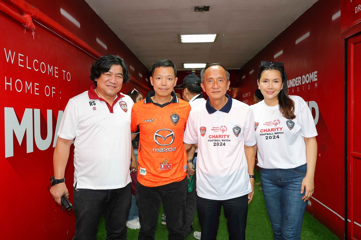 (จากซ้ายไปขวา) ผู้บริหารระดับสูงจากมาสด้า เซลส์ ประเทศไทย โดย นายวัชระ เจียรบุญ ผู้จัดการทั่วไป แผนกการตลาดและรัฐกิจสัมพันธ์ พร้อมด้วยผู้บริหารระดับสูงจาก สโมสร นครราชสีมา มาสด้า เอฟซี นำโดย นายเทวัญ ลิปตพัลลภ ประธานบริหารสโมสรนครราชสีมา มาสด้า เอฟซี, นายวัชรพล โตมรศักดิ์ ประธานสโมสรฯ และ นางสาวอัญรินทร์ วงศ์อัครพัฒนา รองประธานฝ่ายรายได้และสิทธิประโยชน์ สโมสรฯ ร่วมกันถ่ายภาพในงานฟุตบอลการกุศล ระหว่าง เมืองทอง ยูไนเต็ด และ ทีมสวาทแคท