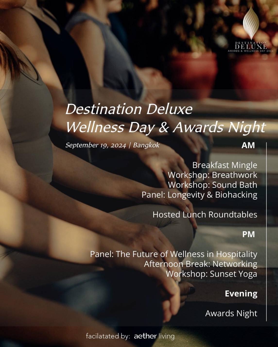 นางสาววิเวียน ทัง ผู้ก่อตั้งและประธานเจ้าหน้าที่บริหาร เดสติเนชั่น ดีลักซ์ (Destination Deluxe) เปิดเผยว่า งาน Destination Deluxe Awards & Wellness Day 2024 จะจัดขึ้นในวันที่ 19 กันยายน 2567 นี้ ณ โรงแรมเดอะสลิล ริเวอร์ไซด์ กรุงเทพฯ จะเป็นงานรวมบุคลากรจากอุตสาหกรรมด้านเวลเนส ความงาม และการท่องเที่ยวจากทั่วโลก ประกอบด้วยผู้บริหารธุรกิจโรงแรม สปา และเวลเนส แบรนด์ผลิตภัณฑ์ดูแลผิวและฟิตเนส ตัวแทนการท่องเที่ยว ผู้นำด้านรีทรีต และผู้ที่รักเวลเนส เพื่อหาแนวโน้มและนวัตกรรมล่าสุดด้านเวลเนสและการท่องเที่ยวเพื่อชิงส่วนแบ่งตลาดที่มีมูลค่า 1 ล้านล้านดอลลาร์สหรัฐ โดยในงานจะมีการเสวนาบนเวทีในหัวข้อ “การมีอายุยืนยาวและไบโอแฮ็กกิง” (Longevity & Biohacking) หนึ่งในเทรนด์สุขภาพที่ได้รับความนิยมอย่างมากในช่วงปีที่ผ่านมา และหัวข้อ “อนาคตของเวลเนสในงานบริการ” (The Future of Wellness in Hospitality) ผู้เข้าร่วมงานสามารถเข้าร่วมกิจกรรมเวิร์คช็อป เช่น การฝึกหายใจ หรือ Breathwork การอาบคลื่นเสียง หรือ Soundbath และฝึกโยคะกับผู้เชี่ยวชาญ รวมทั้งการประกาศผู้ได้รับรางวัล Destination Deluxe Awards ประจำปี 2024 ที่ทรงเกียรติให้กับนักนวัตกรรมผู้กำหนดตลาดที่สร้างผลกำไร ทั้งยังเป็นการยกระดับแนวทางปฏิบัติด้านเวลเนสด้วยแนวทางที่สร้างสรรค์และยั่งยืน