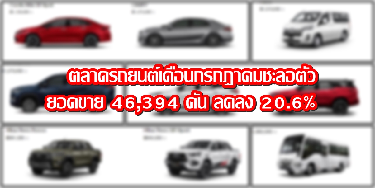 1. ตลาดรถยนต์รวม ปริมาณการขาย 46,394 คัน ลดลง 20.6%