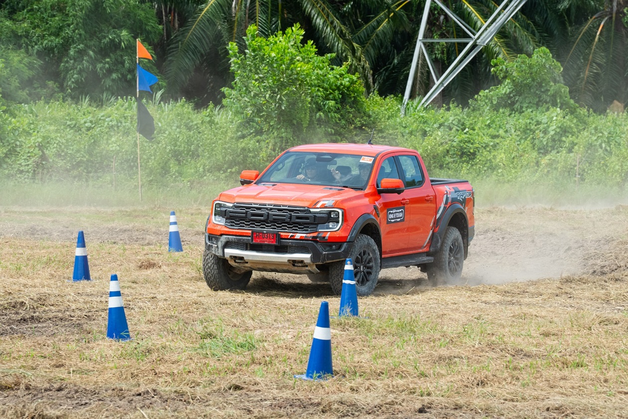 ฟอร์ดจัดเตรียมสนามทดสอบไว้ 2 สนาม สนามแรกมีระยะทางประมาณ 2.5 กิโลเมตร ผู้เข้าร่วมกิจกรรมจะได้สัมผัสเอกลักษณ์และโหมดการขับขี่ออฟโรดอันดุดันและชาญฉลาดของฟอร์ด เรนเจอร์ แร็พเตอร์ เริ่มออกสตาร์ทการขับขี่ผ่านเส้นทางที่เป็นร่องสลับด้วยโหมดบาฮาอันเป็นเอกลักษณ์ของฟอร์ด เรนเจอร์ แร็พเตอร์ รถจะปรับเข้าสู่การขับขี่โดยใช้เกียร์สูงขับเคลื่อน 4 ล้อ (4H) คันเร่งจะปรับให้มีการตอบสนองสูงสุดเพื่ออัตราเร่งที่ดีที่สุด ระบบท่อไอเสียและช่วงล่างจะถูกปรับให้เป็นบาฮาโหมดเช่นกัน เพื่อตอบสนองการขับขี่ออฟโรดแบบความเร็วสูง ต่อด้วยการขับขี่ในเส้นทางโคลนลื่นด้วยโหมดโคลน/ร่อง โดยใช้เกียร์ต่ำขับเคลื่อน 4 ล้อ (4L) ระบบจะปรับการตอบสนองของคันเร่งให้เหมาะสม ลดความไวของคันเร่งลง ระบบดิฟล็อกหลังจะเปิดทำงานอัตโนมัติ เพื่อป้องกันการลื่นไถลออกนอกเส้นทาง ในขณะที่ล้อจะหมุนอย่างรวดเร็วเพื่อกำจัดดินโคลนที่ดอกยาง ทำให้รถขับผ่านอุปสรรคไปได้อย่างง่ายดาย จากนั้นผู้ขับขี่จะได้ขับขี่ผจญภัยในเส้นทางวิบากรายล้อมด้วยแนวต้นไม้ ขับขี่ผ่านเนินชันและหลุมสลับโดยในฟอร์ด เรนเจอร์ แร็พเตอร์ ยังมีดิฟล็อกหน้าที่ผู้ขับขี่สามารถเปิดใช้งานเพิ่มเติมเพื่อให้การขับผ่านอุปสรรคทำได้ง่ายขึ้น ต่อด้วยการทดสอบใช้ฟีเจอร์ Trail Control ซึ่งเปรียบเสมือนระบบควบคุมความเร็วแบบอัตโนมัติสำหรับเส้นทางออฟโรดใช้ในการไต่ขึ้นและลงทางลาดชัน พร้อมด้วยการใช้กล้องมองรอบคัน 360 องศาช่วยให้มองเห็นด้านนอกตัวรถเพื่อขึ้นและลงเนินที่มีความชันกว่า 25 องศา ทำให้ผู้ขับขี่ผ่านอุปสรรคที่ยากลำบากไปได้อย่างง่ายดาย