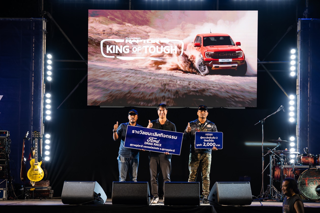 พิเศษสุดสำหรับสนามปิดท้ายของกิจกรรม King of Tough ผู้เข้าร่วมงานยังมีโอกาสสัมผัสความตื่นเต้นกับกิจกรรมการขับขี่แบบ Drag Race Challenge ด้วยการขับฟอร์ด เรนเจอร์ ไวลด์แทรค 3.0 ลิตร ดีเซล วี 6 ในการแข่งขันสุดพิเศษที่ชัยชนะจะตัดสินด้วยความแม่นยำในการทำเวลาเข้าเส้นชัยให้ใกล้เคียงกับเวลาที่กำหนดมากที่สุด (Bracket 17 sec.) โดยผู้ชนะอันดับที่ 1และ 2 ได้รับเงินรางวัล 5,000 บาท และ 2,000 บาท ตามลำดับ