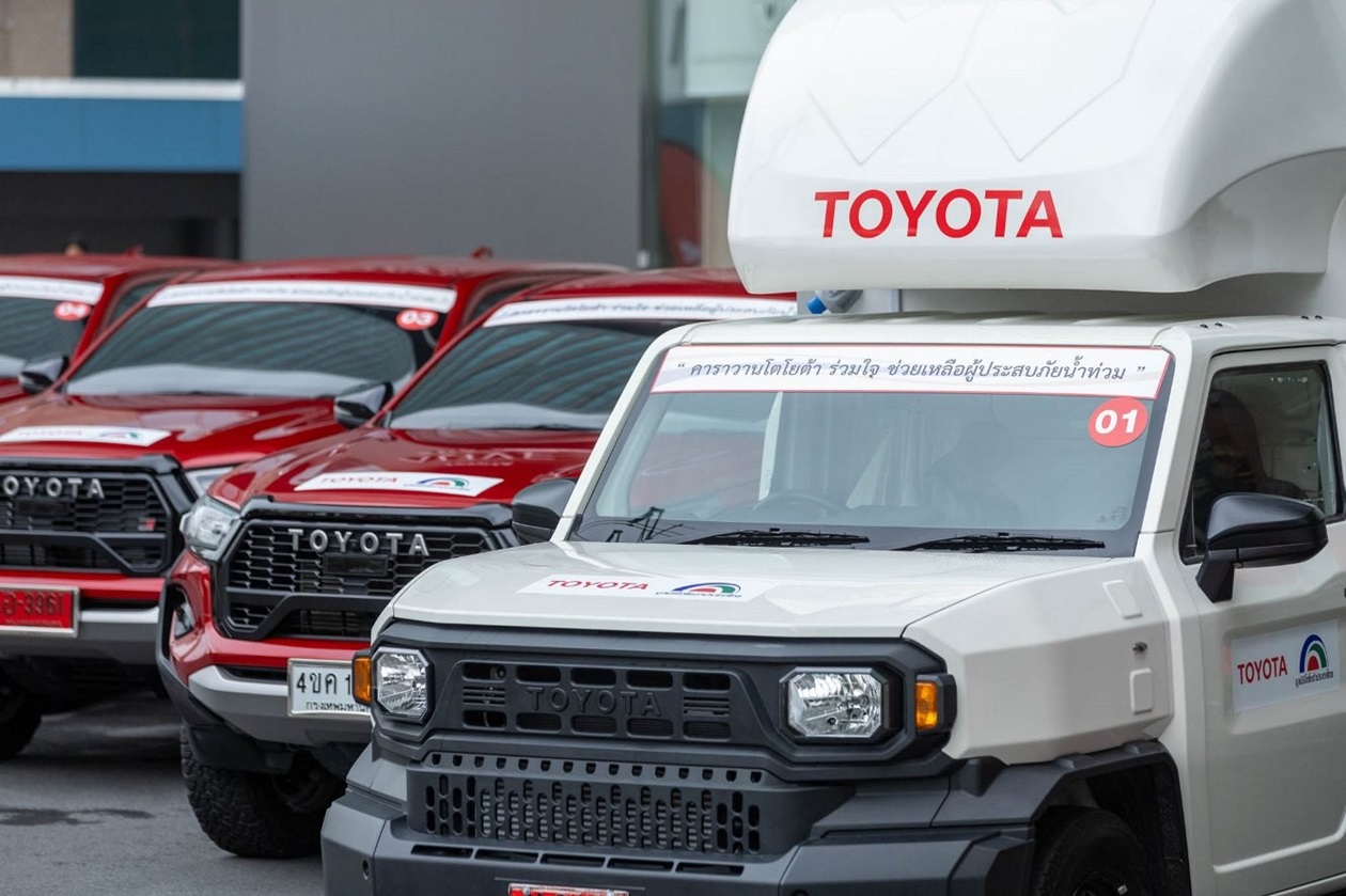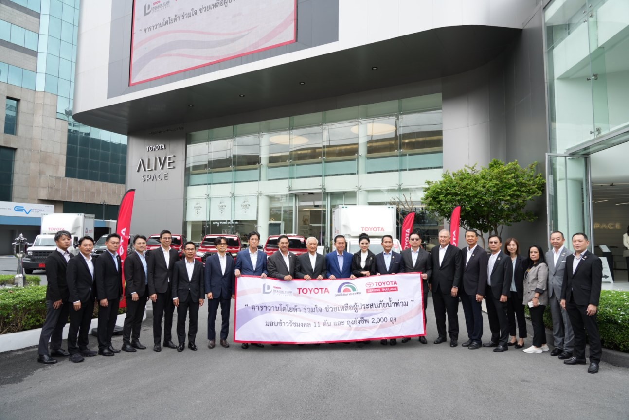 มูลนิธิโตโยต้าประเทศไทย บริษัท โตโยต้า มอเตอร์ ประเทศไทย จำกัด ชมรมผู้แทนจำหน่ายโตโยต้าทั่วประเทศ และบริษัท โตโยต้า ลีสซิ่ง (ประเทศไทย) จำกัด มีความห่วงใยและตั้งใจในการร่วมช่วยเหลือคนไทยให้ก้าวผ่านวิกฤติครั้งนี้ไปด้วยกันโดยเร็วที่สุด จึงได้ร่วมมือกันสนับสนุนถุงยังชีพ จำนวน 2,000 ชุด ข้าวรัชมงคล 11 ตัน และสุขากระดาษจากมูลนิธิเอสซีจี (SCG Foundation) จำนวน 300 ชุด เพื่อนำไปแจกจ่ายให้กับประชาชนที่เดือดร้อนในแต่ละพื้นที่ และชุมชนที่อยู่บริเวณใกล้เคียงกับผู้แทนจำหน่ายฯ ตลอดจนส่งรถกระบะโตโยต้า ไฮลักซ์ รีโว่ และไฮลักซ์ แชมป์ จำนวนรวม 7 คัน เพื่อสนับสนุนการปฏิบัติภารกิจของเจ้าหน้าที่ในพื้นที่