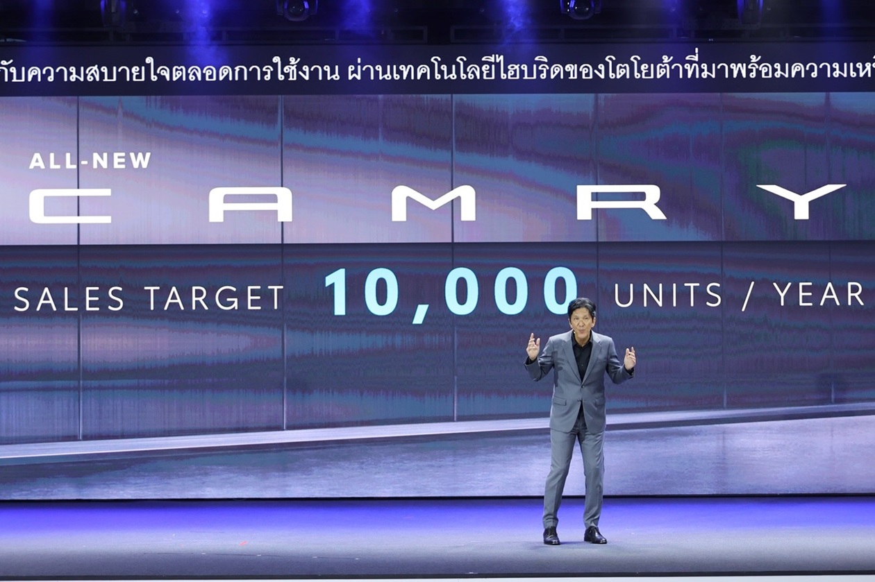 มร. ยามาชิตะ กล่าวต่อไปว่า“เพื่อต่อยอดความสำเร็จของรถรุ่นนี้ เราพร้อมแล้วที่จะแนะนำสุดยอดยนตรกรรมแห่งความสมบูรณ์แบบเหนือระดับกับ ALL-NEW CAMRY ที่มาในรุ่นเครื่องยนต์ไฮบริดในทุกไลน์อัพ เพื่อตอบรับความต้องการที่สูงขึ้นอย่างรวดเร็วของรถเครื่องยนต์ไฮบริด HEV ที่มีระดับราคาที่หลากหลาย ผมเชื่อว่า ALL-NEW CAMRY จะสร้างความภาคภูมิใจในการเป็นเจ้าของให้กับผู้ที่ครอบครองยนตกรรมรุ่นนี้ ควบคู่ไปกับความสบายใจตลอดการใช้งาน ผ่านเทคโนโลยีไฮบริดของโตโยต้าที่มาพร้อมความเหนือกว่า ทั้งนี้ เราตั้งเป้าหมายการขายที่ 10,000 คัน ต่อปี”