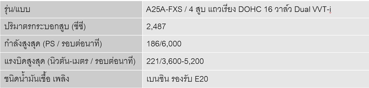 o เครื่องยนต์และระบบขับเคลื่อนแบบ Hybrid เจเนอเรชันใหม่ ขนาด 2.5 ลิตร