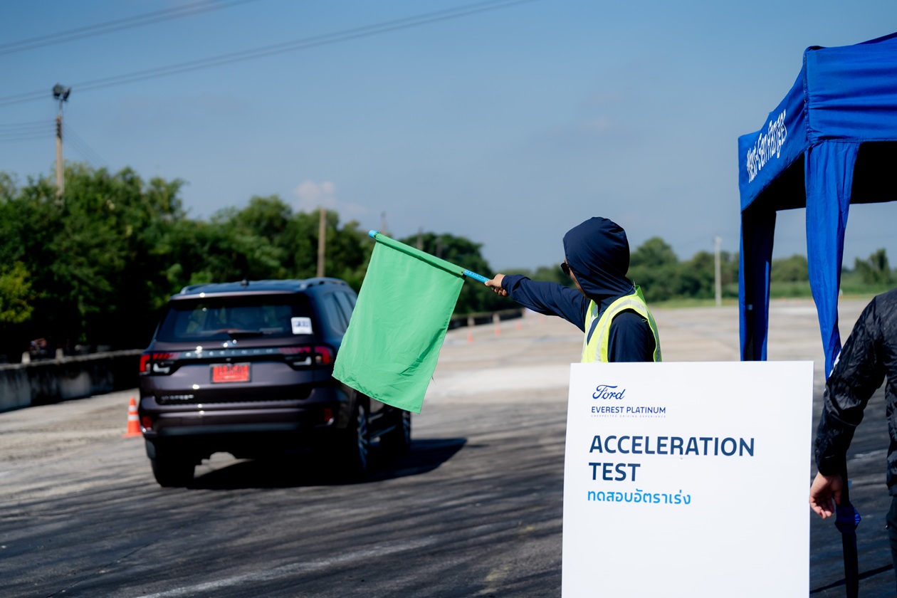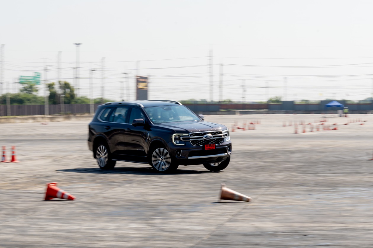 หลังจากทำความรู้จักฟีเจอร์ที่น่าโดดเด่นของฟอร์ด เอเวอเรสต์ แพลทินัม ผู้เข้าร่วมกิจกรรมได้ทดสอบการขับขี่สุดเร้าใจบนสนามทดสอบที่ออกแบบมาเพื่อพิสูจน์สมรรถนะอันเหนือชั้นในทุกมิติ เริ่มจากการทดสอบอัตราเร่งจาก 0-100 กม./ชม. ที่แสดงขุมพลังอันดุดันของเครื่องยนต์วี 6 3.0 ลิตร 250 แรงม้า ผสานกับการทำงานของเกียร์ที่ตอบสนองได้อย่างฉับไวและนุ่มนวล ต่อด้วยการทดสอบสลาลอมที่ท้าทายความแม่นยำของพวงมาลัยและประสิทธิภาพของระบบช่วงล่าง ความตื่นเต้นยังคงดำเนินต่อเนื่องด้วยการทดสอบเปลี่ยนเลนแบบกะทันหัน ที่ทำให้ผู้ขับขี่ได้สัมผัสถึงช่วงล่างที่ยึดเกาะถนนได้ดีเยี่ยม ตามด้วยการทดสอบบนพื้นเปียกที่แสดงประสิทธิภาพของระบบป้องกันการลื่นไถลและระบบเบรก ABS ป้องกันล้อล็อกและระบบ EBD ที่ช่วยกระจายแรงดันเบรก เพิ่มความมั่นใจในการขับขี่แม้ในสภาพถนนเปียกหรือลื่น ไฮไลท์ของการทดสอบยังรวมถึงการทดสอบระบบกันสะเทือนที่ช่วยลดแรงสั่นสะเทือนและรักษาความเงียบภายในห้องโดยสาร ปิดท้ายด้วยการทดสอบความแม่นยำของพวงมาลัยด้วยวงเลี้ยวแคบเพียง 5.6 เมตร แสดงให้เห็นถึงความคล่องตัวของรถที่มีขนาดใหญ่ ทุกการทดสอบล้วนตอกย้ำถึงสมรรถนะอันเหนือชั้นของฟอร์ด เอเวอเรสต์ แพลทินัม ที่พร้อมรับมือกับทุกความท้าทายบนท้องถนน