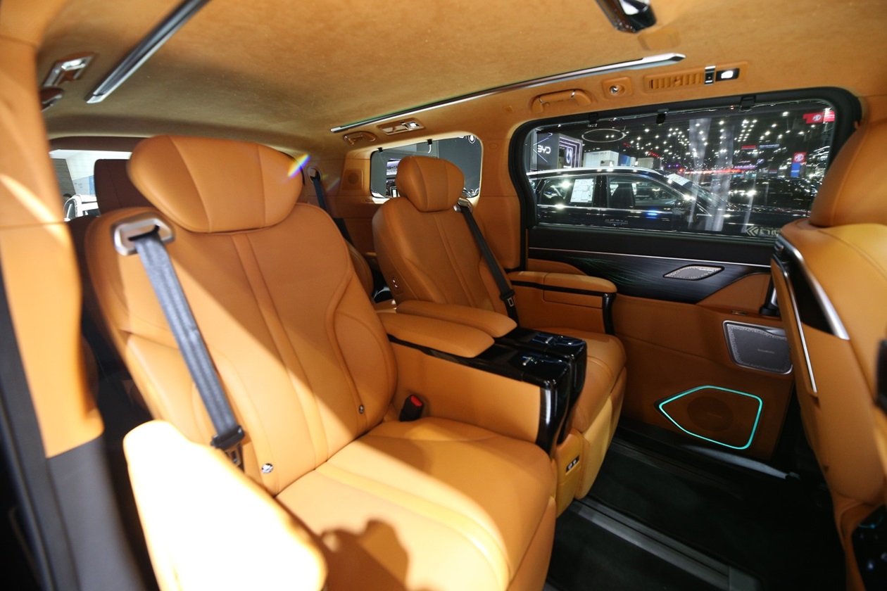 ด้านห้องโดยสาร ยังอัดแน่นไปด้วยความหรูหราและสะดวกสบายจากเบาะนั่งทำจากหนังกลับพร้อมไมโครไฟเบอร์คุณภาพสูง โดยเบาะด้านหน้าสามารถปรับเอนได้ถึง 156 องศา ในขณะที่เบาะด้านหลังปรับได้ถึง 141 องศา ร่วมกับห้องโดยสารเงียบสงบจากวัสดุดูดซับเสียงคุณภาพสูงที่ให้ความเงียบระดับเดียวกับอวกาศ ผนวกกับระบบเสียง Harman Kardon มาพร้อมลำโพงถึง 16 ตำแหน่ง เพิ่มความหรูหราอย่างมีระดับด้วย “เพดานดวงดาว” มากกว่า 1,200 จุด ที่ได้แรงบันดาลใจจากทะเลสาบเทคาโป ซึ่งได้ชื่อว่าเป็นทะเลสาบที่มีท้องฟ้าเต็มไปด้วยดวงดาวที่สวยงามที่สุดในโลก ยกระดับประสบการณ์การเดินทางรูปแบบออฟโรดได้อย่างเหนือระดับทั้งด้านความสะดวกสบายและความปลอดภัยได้อย่างเป็นเอกลักษณ์