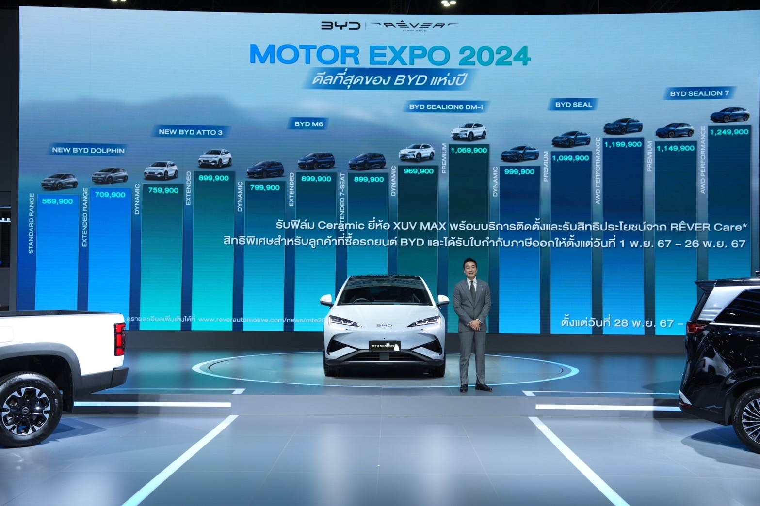 กรุงเทพฯ – 10 ธันวาคม 2567 - บริษัท เรเว่ ออโตโมทีฟ จำกัด ผู้จัดจําหน่ายและให้บริการหลังการขายรถยนต์พลังงานไฟฟ้า BYD และ DENZA อย่างเป็นทางการในประเทศไทย ภายใต้กลุ่มธุรกิจเรเว่ ขอขอบคุณลูกค้าและผู้สนใจทุกท่านที่ให้การตอบรับอย่างดียิ่งในงานมหกรรมยานยนต์ครั้งที่ 41 ที่ผ่านมา โดยบูธของ BYD และ DENZA ได้รับความสนใจและกระแสตอบรับจากผู้เข้าชมจำนวนมาก ส่งผลให้ยอดจองรถยนต์ของบูธ BYD และ DENZA รวมทั้งสิ้น 7,615 คัน โดยเฉพาะรุ่น BYD SEALION 7 ที่มียอดจองสูงสุดถึง 3,853 คัน ตอกย้ำความสำเร็จของ BYD ในฐานะผู้นำด้านยานยนต์พลังงานไฟฟ้าในประเทศไทย