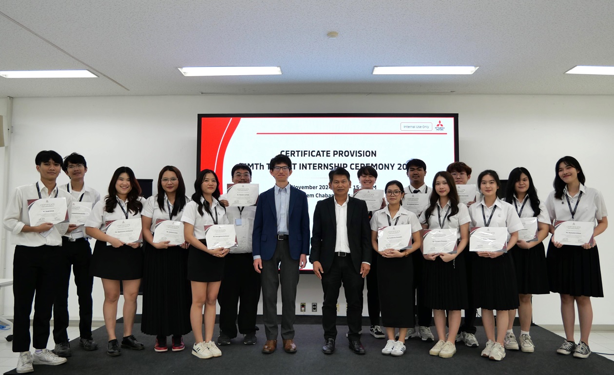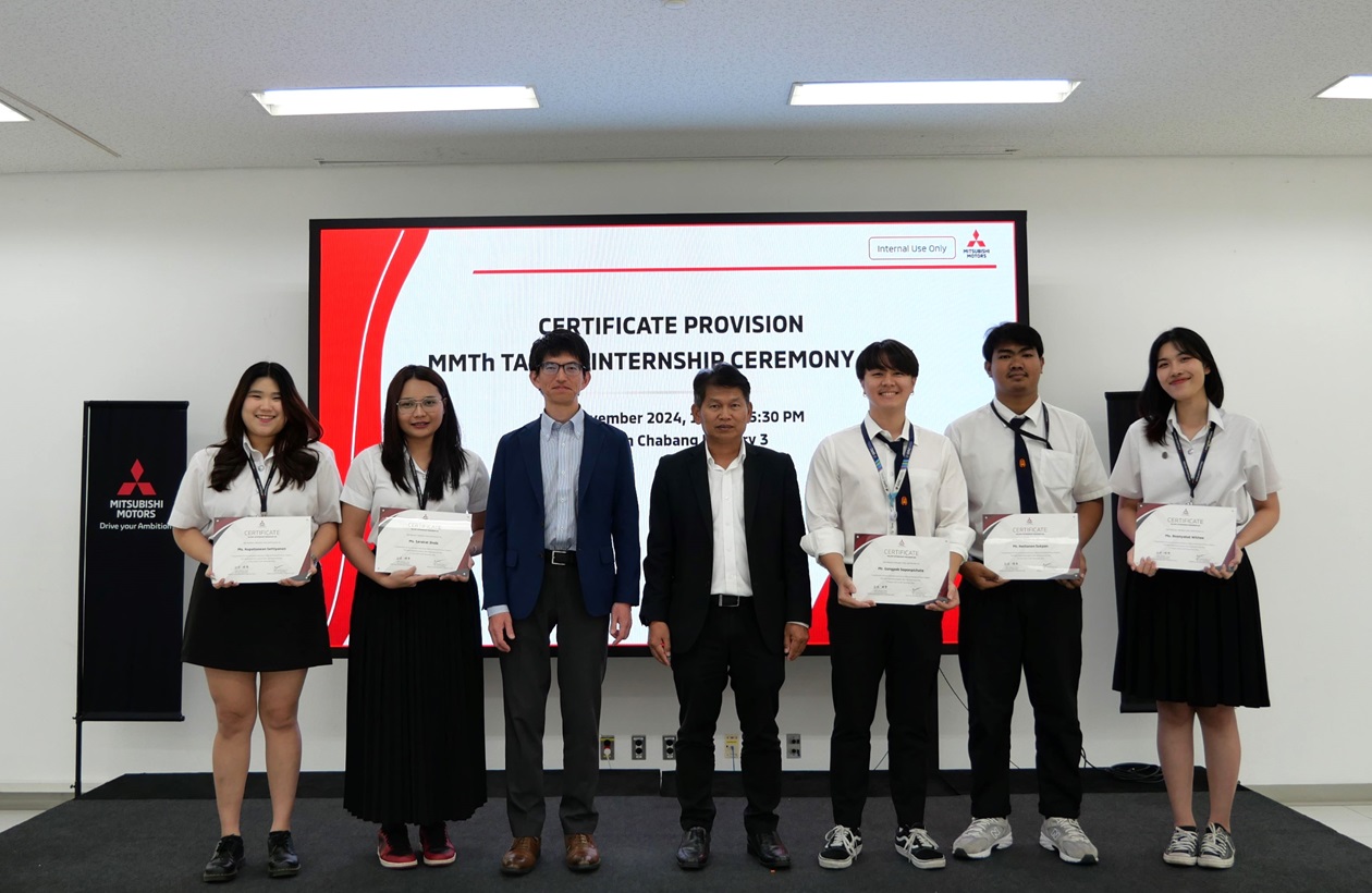 กรุงเทพฯ – 16 ธันวาคม 2567: บริษัท มิตซูบิชิ มอเตอร์ส (ประเทศไทย) จำกัด มอบรางวัลให้แก่ผู้ชนะการประกวดโครงการฝึกงานยอดเยี่ยม (Top 5 Internship Project Award) พร้อมมอบประกาศนียบัตรให้แก่นักศึกษาที่สำเร็จหลักสูตรฝึกงานจากโครงการ ‘MMTh Talent Internship Program’ ครั้งที่ 6 ประจำปี 2567 โดยโครงการนี้เปิดโอกาสให้นักศึกษาริเริ่มและสร้างสรรค์โครงการที่สนับสนุนการพัฒนาการดำเนินงานของบริษัทสู่ความเป็นเลิศ เพื่อให้นักศึกษาได้มีโอกาสนำความรู้เชิงทฤษฎีมาปรับใช้กับการทำงานจริง ทั้งยังส่งเสริมการเรียนรู้อย่างเต็มรูปแบบนอกห้องเรียน อีกทั้งเตรียมความพร้อมสำหรับการประกอบอาชีพในอนาคต