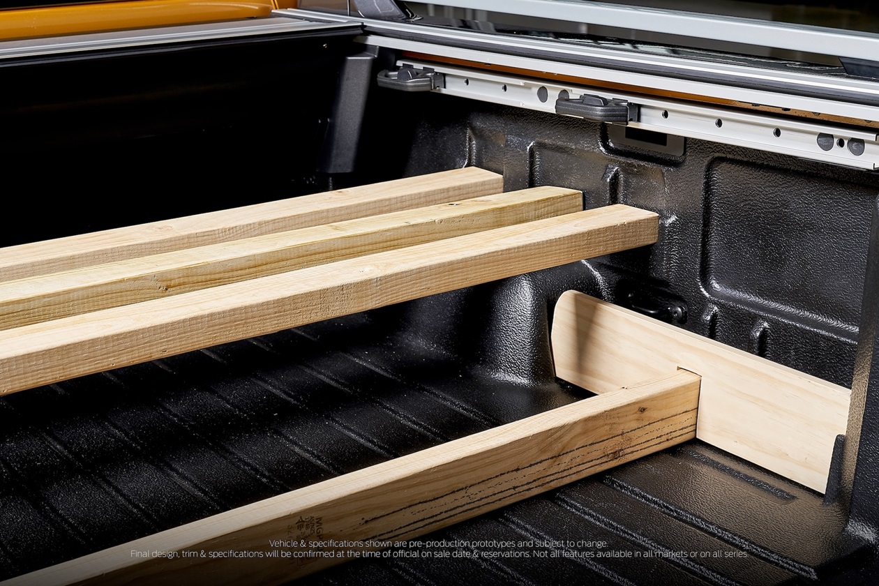 ฟอร์ดเข้าใจถึงความยุ่งยากในการจัดการพื้นที่ใช้สอยท้ายกระบะของผู้ใช้งาน ทีมงานฟอร์ดจึงออกแบบพื้นปูกระบะท้ายให้ผู้ใช้งานจัดสรรพื้นที่ให้เป็นสัดส่วนได้เองด้วยแผ่นไม้อัด และสามารถเก็บอุปกรณ์ในกระบะท้ายได้อย่างเป็นระเบียบตามต้องการ รวมถึงลดความเสี่ยงที่อุปกรณ์จะเคลื่อนที่ไปมาจนเกิดความเสียหายได้