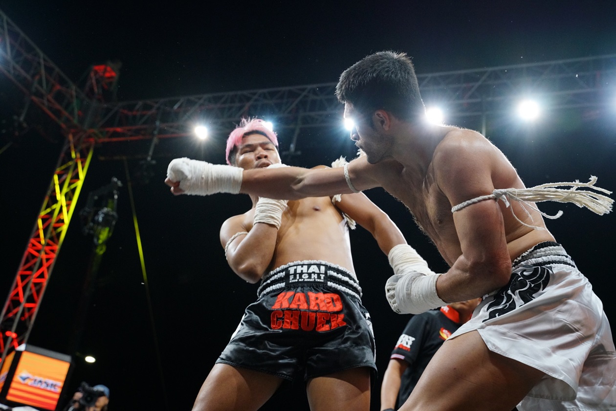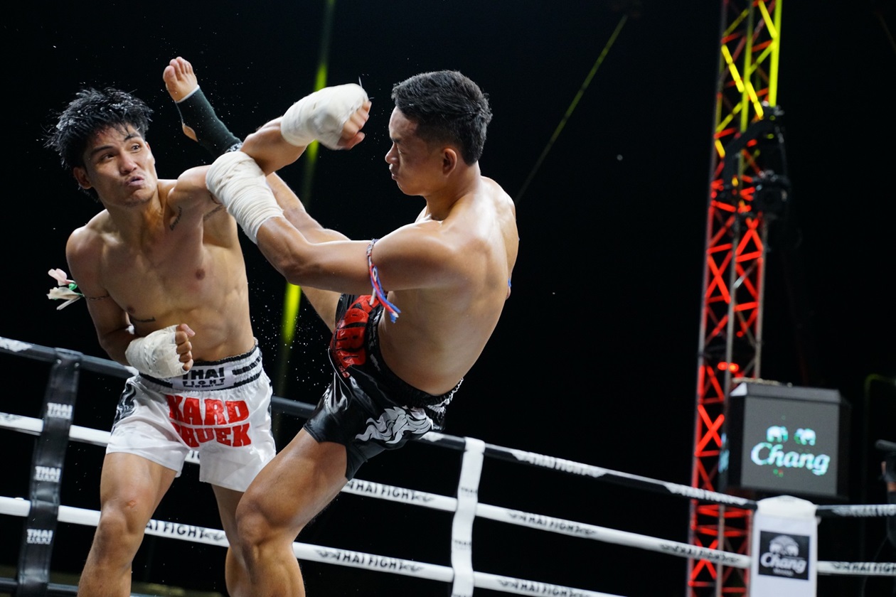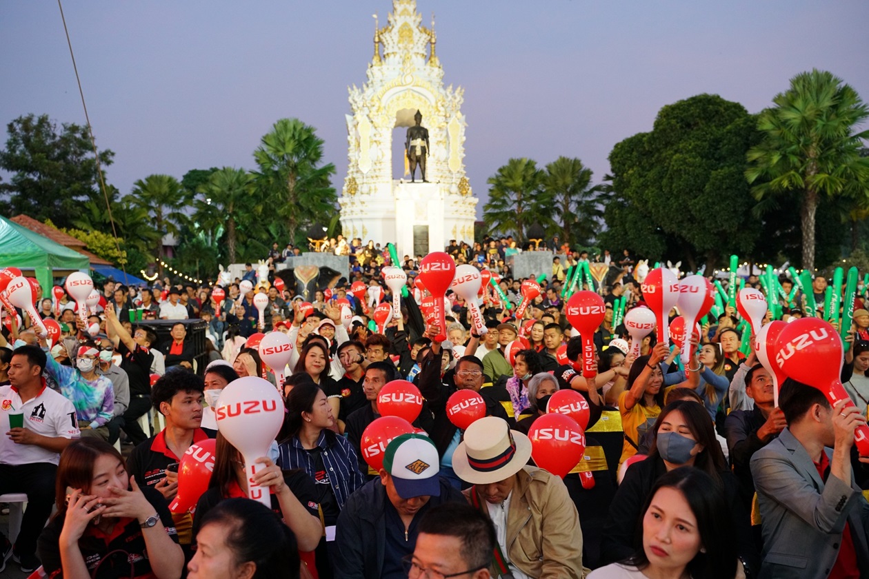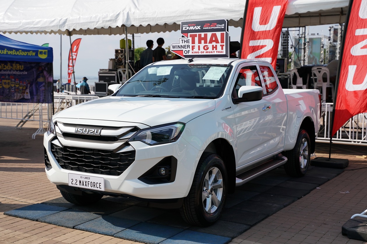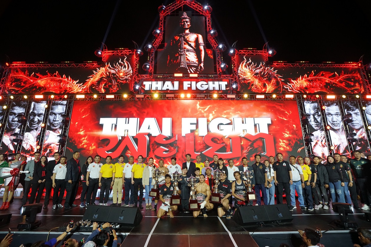 การแข่งขัน “THAI FIGHT 2024” รอบชิงชนะเลิศ จัดเต็มความสนุกสุดมันกับแสงสีเสียงสุดอลังการ พร้อมด้วยโชว์แสดงพลุสุดยิ่งใหญ่ เพื่อเฉลิมพระเกียรติ พระบาทสมเด็จพระเจ้าอยู่หัว และ สมเด็จพระนางเจ้าฯ พระบรมราชินี ท่ามกลางลมหนาวเอาใจชาวเหนือนับหมื่นคนที่ริมกว๊านพะเยา โดยมี ร้อยเอกธรรมนัส พรหมเผ่า สมาชิกสภาผู้แทนราษฎรจังหวัดพะเยา เขต1 อดีตรัฐมนตรีว่าการกระทรวงเกษตรและสหกรณ์ ขึ้นเปิดกรวยถวายราชสักการะและกล่าวเปิดงานในฐานะ ประธานจัดการแข่งขัน THAI FIGHT พะเยา โดยคู่เด่นรอบชิงชนะเลิศเริ่มด้วย พิกัด 65 กิโลกรัม ระหว่าง “กล้าศึก อาวุธไฟท์เกียร์” แชมป์ Isuzu Thailand Championship 2024 กับ “โพย่า ไบรามี่” นักชกจากอิหร่าน เปิดเกมโพย่าเริ่มเดินเกมรุกก่อนทำให้เป็นต่อในช่วงแรก จากนั้นทั้งคู่ต่างออกอาวุธกันอย่างสูสี ส่งผลให้คะแนนออกมาเสมอ ทำให้ต้องตัดสินในยกที่ 4 กล้าศึกสาดเข่าและปล่อยหมัดฮุกกลางลำตัวโพย่าจนร่วงให้กรรมการนับ กล้าศึกจึงชนะน็อก คว้าแชมป์ THAI FIGHT 2024 ไปครอง รับถ้วยพระราชทานในพระบาทสมเด็จพระเจ้าอยู่หัว เข็มขัดแชมป์ และรถปิกอัพ “ใหม่! อีซูซุ ดีแมคซ์ ไฮแลนเดอร์ 2.2 Ddi MAXFORCE รุ่น 2 ประตู”