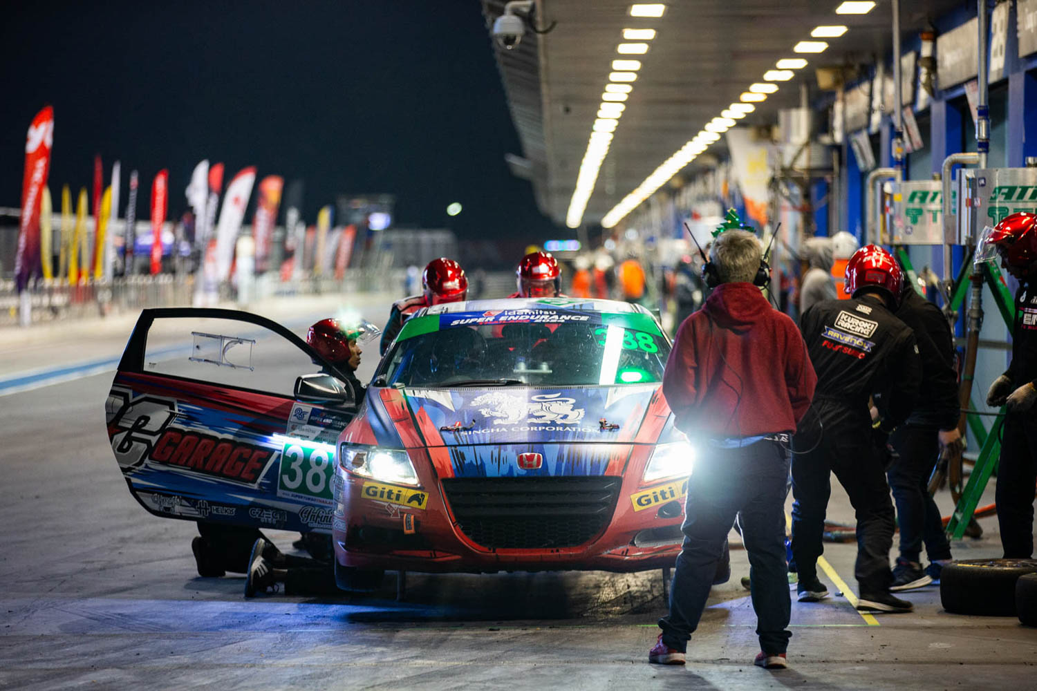 แม้ในช่วงแรกรถแข่ง Honda FK7 2400cc หมายเลข 245 จาก TEAM ENDLESS และรถแข่ง PEUGEOT 308 1600 TURBO หมายเลข 289 จาก BBR BY YK MOTORSPORTS ที่รวมดาวขับแถวหน้าของไทยไว้หลายคนได้แก่ อนุสรณ์ อาศิรเลิศสิริ, กันตธีร์ กุศิริ, กันตศักดิ์ กุศิริ, ชาริยะ นุยา และ “มะปราง” อลิสา ขุนแขวง จะสลับกันเป็นผู้นำในช่วง 5-6 ชั่วโมงแรก ทว่าจากความขัดข้องทางเทคนิค ส่งให้ทั้งคู่เสียเวลาในพิตนานเกินไปจนหลุดออกจากท็อปไฟว์หลังผ่าน 7 ชั่วโมงแรก