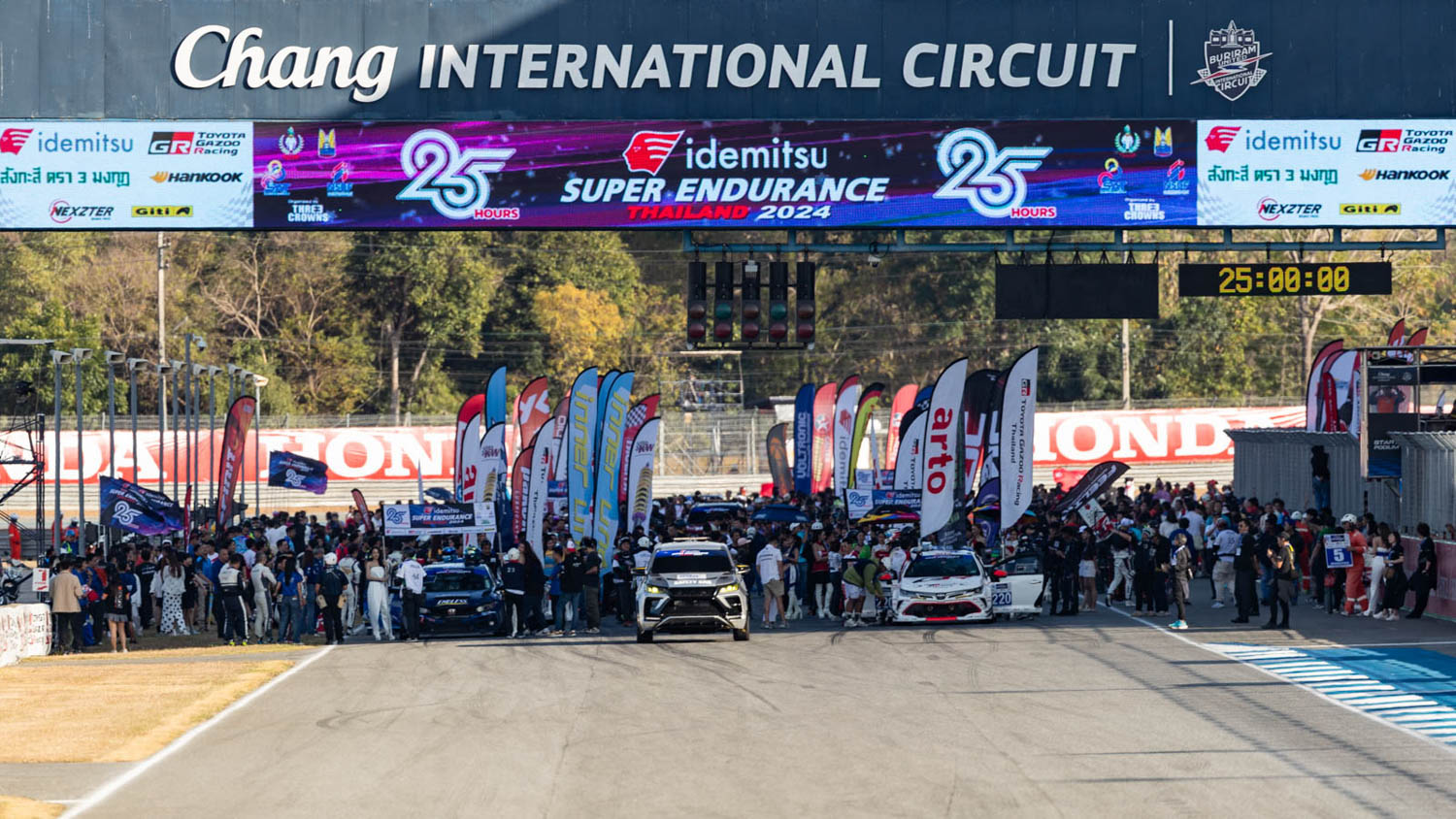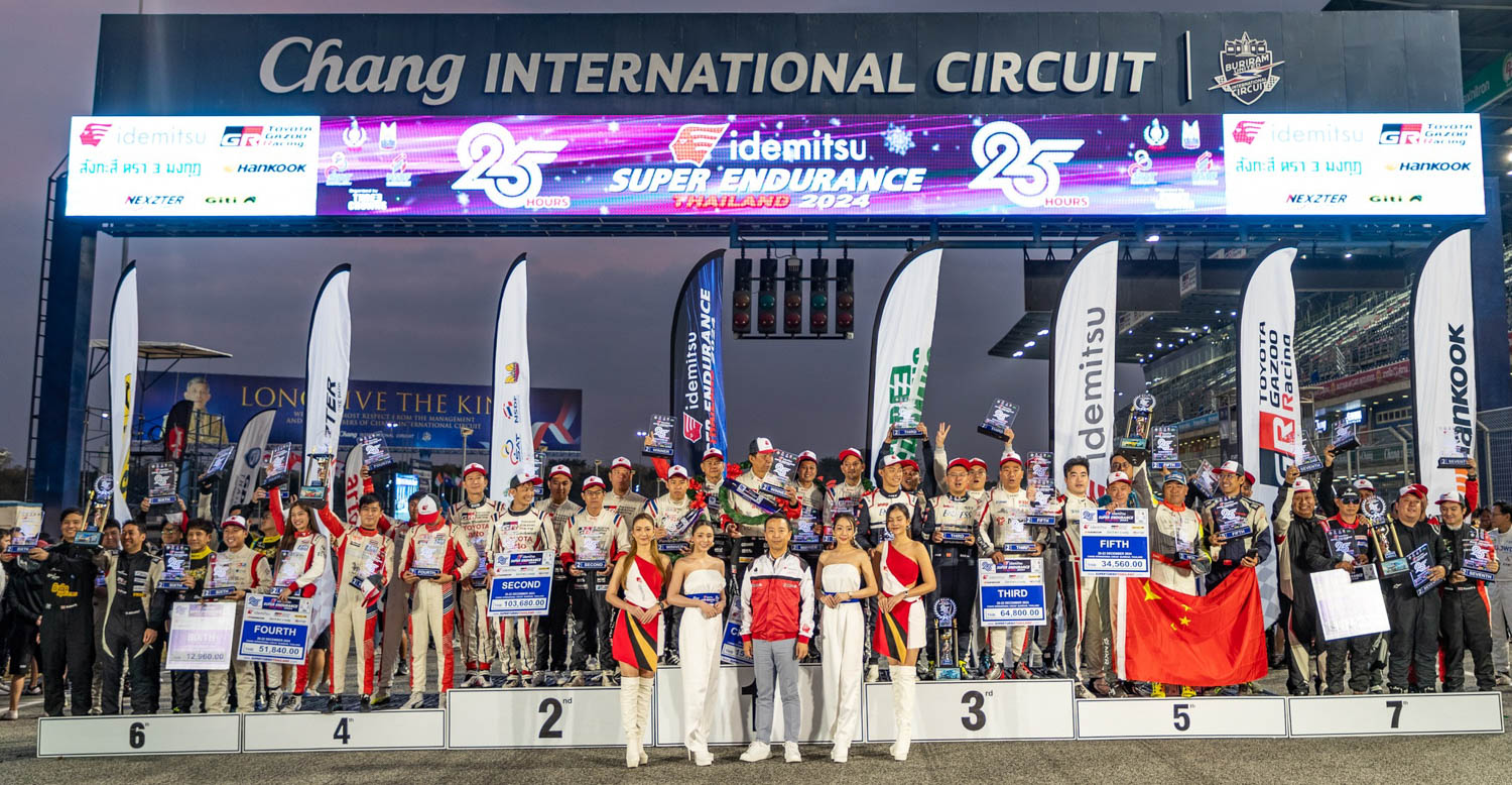 ศึกรถยนต์ทางเรียบเอ็นดูรานซ์สุดโหด 25 ชั่วโมง รายการ “Idemitsu SUPER ENDURANCE THAILAND 2024” 25 HOURS ปิดฉากอย่างยิ่งใหญ่หลังดวลกันข้ามวันข้ามคืน รถแข่งทั้งสิ้น 61 คัน นักขับทั้งหมด 344 คน จาก 17 สัญชาติ เกมพลิกไปมาครบทุกรสชาติ ผลปรากฏว่า Toyota Gazoo Racing Thailand ภายใต้การขับของ สุทธิพงศ์ สมิตชาติ, ณัฐวุฒิ เจริญสุขะวัฒนะ, มานัต กุละปาลานนท์, ณัฐพงษ์ ห่อทองคำ และ อัครพงศ์ อัคนีนิโรธ ผงาดคว้าแชมป์โอเวอร์ออลล์ หลังวิ่งไปทั้งสิ้น 729 รอบสนาม 3.3 พันกิโลเมตร ขณะทุกรุ่นบู๊สุดมันส์คุ้มค่าทุกชั่วโมงของการแข่งขัน ที่ สนามช้าง อินเตอร์เนชั่นแนล เซอร์กิต จ.บุรีรัมย์ เมื่อสุดสัปดาห์ที่ผ่านมา