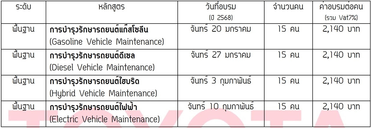 รายละเอียดหลักสูตรความรู้เทคโนโลยียานยนต์โตโยต้า
