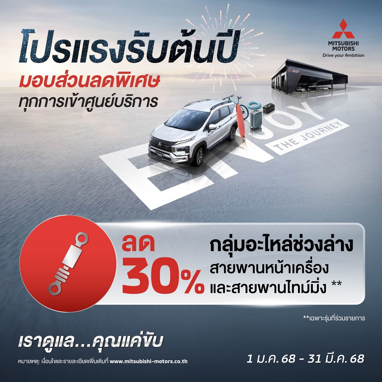 กรุงเทพฯ – 27 มกราคม 2568: บริษัท มิตซูบิชิ มอเตอร์ส (ประเทศไทย) จำกัด เปิดตัวแคมเปญบริการหลังการขายสุดพิเศษสำหรับเจ้าของรถมิตซูบิชิ ที่หมดระยะเวลาการรับประกัน ด้วยการมอบส่วนลด ร้อยละ 30 สำหรับกลุ่มอะไหล่ช่วงล่าง สายพานหน้าเครื่อง และสายพานไทม์มิ่งที่ร่วมรายการ ช่วยให้ลูกค้าอุ่นใจ คลายกังวลในการใช้งานรถยนต์ที่มีสมรรถนะและความปลอดภัยแม้หมดระยะเวลาการรับประกัน ลูกค้าสามารถนำรถเข้ารับบริการได้ตั้งแต่วันนี้ จนถึงวันที่ 31 มีนาคม 2568