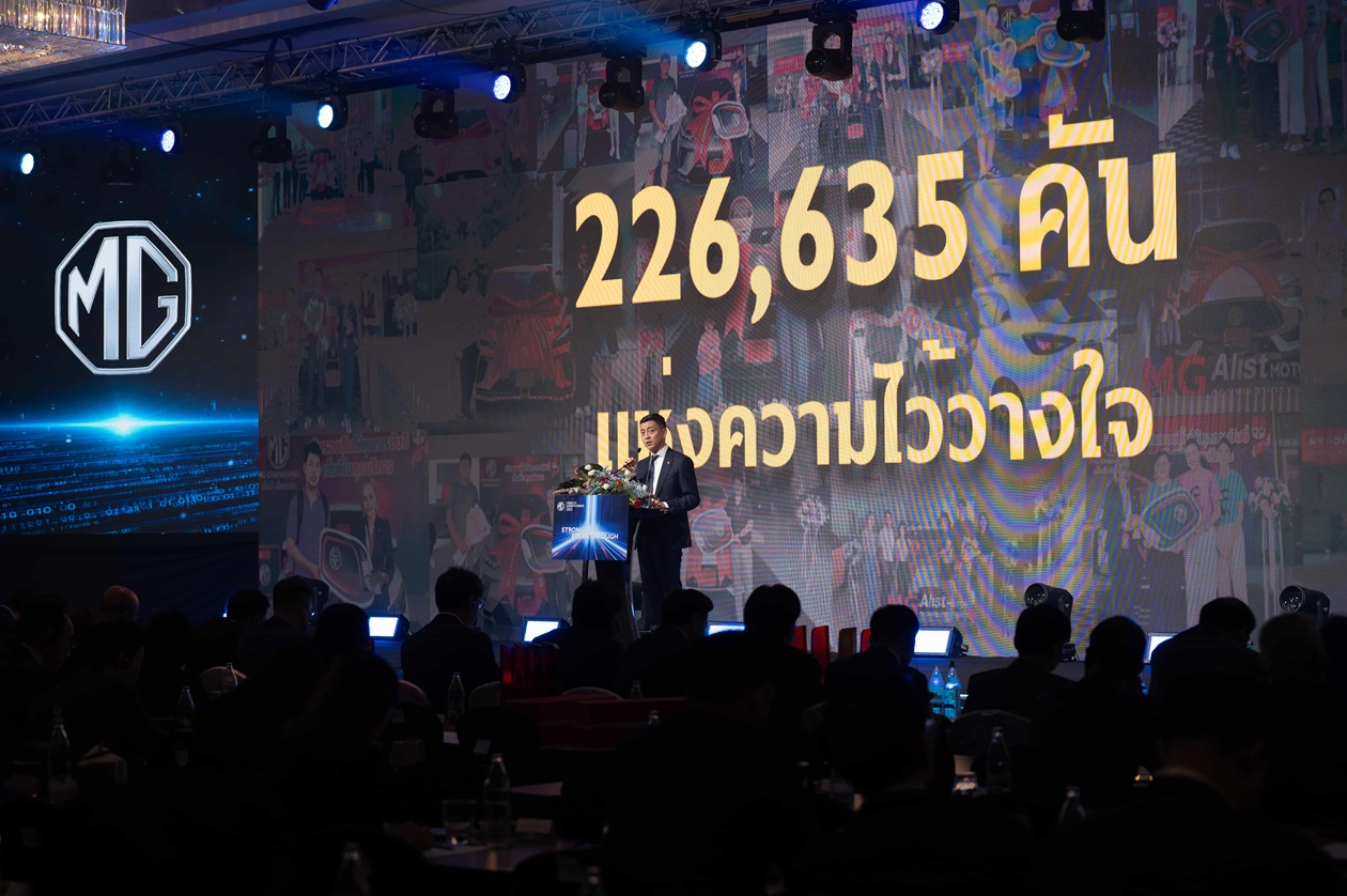 กรุงเทพฯ – 30 มกราคม 2568 - บริษัท เอสเอไอซี มอเตอร์ – ซีพี จำกัด และ บริษัท เอ็มจี เซลส์ (ประเทศไทย) จำกัด ผู้ผลิตและผู้จำหน่ายรถยนต์เอ็มจีในประเทศไทย กำหนดทิศทางแบรนด์และกลยุทธ์การตลาดในประเทศไทย ภายในงาน “MG DEALER CONFERENCE 2025” ตั้งเป้ายกระดับแบรนด์ทุกมิติทั้งการนำเสนอผลิตภัณฑ์ยานยนต์คุณภาพสูงครบทุกเซกเมนต์ ทั้งเครื่องยนต์ไฮบริด และไฟฟ้าด้วยนวัตกรรมและเทคโนโลยีล้ำสมัย ในปีนี้ เตรียมพร้อมก้าวข้ามขีดจำกัดด้วยการนำเสนอรถยนต์ไฟฟ้ารุ่นใหม่ ที่จะเปิดตัวภายในงาน Bangkok International Motor Show 2025 พร้อมปรับภาพลักษณ์ผู้แทนจำหน่ายดันมาตรฐานการขายและบริการหลังการขายทุกโชว์รูมให้เทียบเท่ากับ MG EVolution Showroom ตอกย้ำความมั่นใจให้กับลูกค้ารถยนต์ไฟฟ้าด้วยการเป็นแบรนด์แรกและแบรนด์เดียวที่ประกาศเพิ่มการรับประกันคุณภาพแบตเตอรี่แรงเคลื่อนสูง ชุดมอเตอร์ขับเคลื่อน และชุดควบคุมมอเตอร์ขับเคลื่อนตลอดอายุการใช้งาน (LIFETIME WARRANTY) พร้อมตั้งเป้าครองส่วนแบ่งทางการตลาด 5% และทะยานสู่ Top 3 ภายในทศวรรษที่ 2 ของแบรนด์
