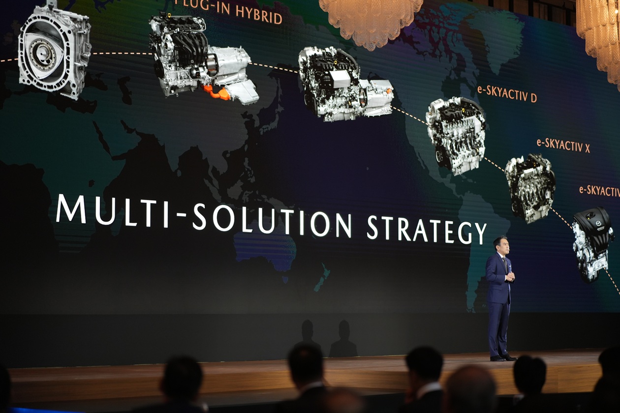 มาสด้าพร้อมเดินหน้าส่งมอบเทคโนโลยียานยนต์ไฟฟ้า ตามแนวทาง Multi-solution ซึ่งรวมถึง MHEVs, HEVs, PHEVs, BEVs, R-EVs และรถยนต์ที่มีความเป็นกลางทางคาร์บอน เพื่อให้ลูกค้ามีทางเลือกของผลิตภัณฑ์ที่หลากหลายและตรงกับความต้องการมากที่สุด เราเชื่อว่าแนวทางนี้จะสามารถช่วยลดการปล่อยก๊าซคาร์บอนไดออกไซด์สู่ชั้นบรรยากาศได้อย่างมีประสิทธิภาพและรวดเร็วที่สุด