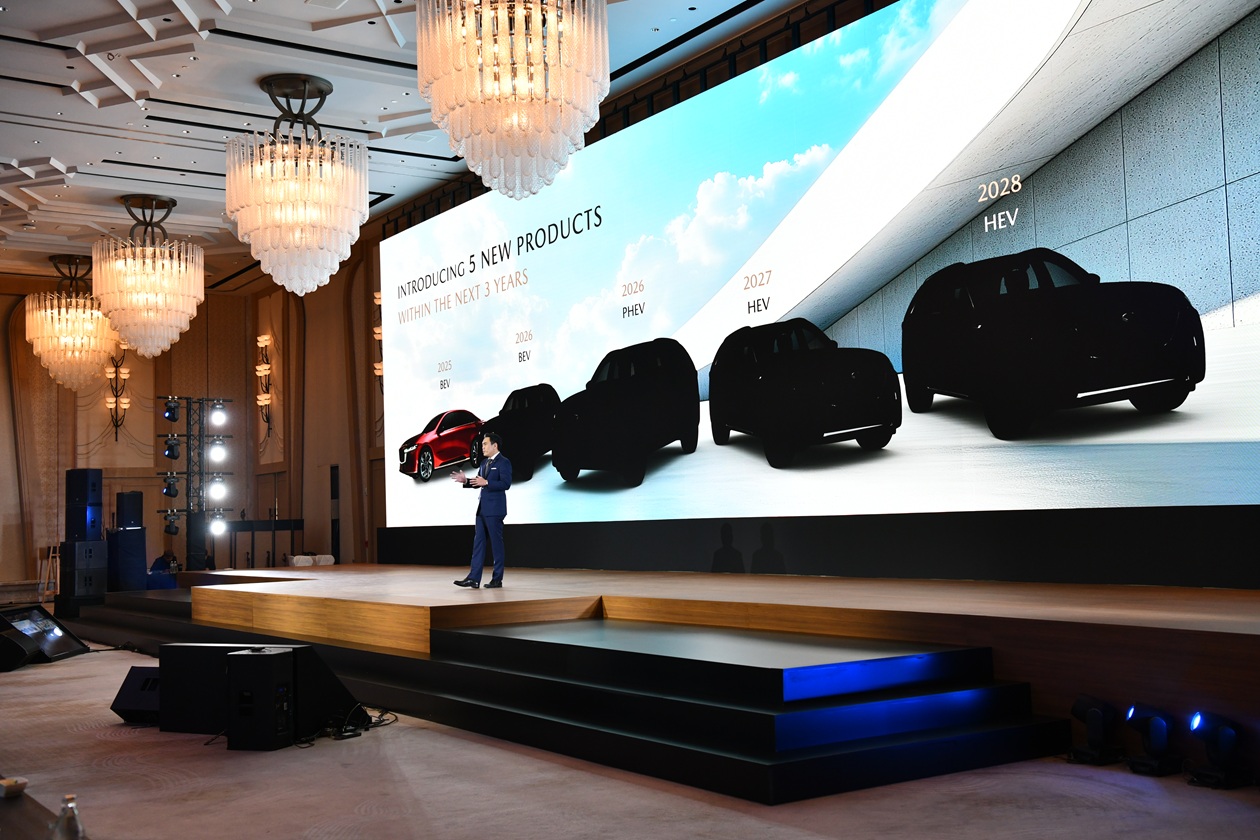 กรุงเทพฯ – ประเทศไทย, วันที่ 14 กุมภาพันธ์ 2568 – มาสด้าประกาศแนวทางการดำเนินธุรกิจครั้งประวัติศาสตร์ขึ้นในประเทศไทย เพื่อสร้างความเชื่อมั่นให้กับลูกค้า ดีลเลอร์ และพันธมิตรทางธุรกิจ นำทัพโดย มร. มาซาฮิโร โมโร ประธานกรรมการบริหารและซีอีโอ มาสด้า มอเตอร์ คอร์ปอเรชั่น พร้อมด้วย นายธีร์ เพิ่มพงศ์พันธ์ ประธานกรรมการบริหารและซีอีโอ มาสด้า เซลส์ ประเทศไทย ถ่ายทอดวิสัยทัศน์ครั้งสำคัญสุดในรอบทศวรรษ เพื่อเดินหน้าสู่การเปลี่ยนแปลงครั้งสำคัญต่อการก้าวสู่อนาคตที่ยั่งยืน ภายใต้ธีม The Future, Crafted by the Joy of Driving ชูวิสัยทัศน์ในการพัฒนาผลิตภัณฑ์และเทคโนโลยียานยนต์ใหม่ล่าสุด เพื่อส่งมอบความสุขในการขับขี่ตามแนวทาง Multi-solution ตอบโจทย์ความต้องการลูกค้าควบคู่กับแผนเปิดตัวรถยนต์ใหม่ 5 รุ่น ภายใน 3 ปี เชื่อมั่นระบบเศรษฐกิจและศักยภาพของประเทศไทยประกาศทุ่มเงินลงทุนอีกกว่า 5,000 ล้านบาท ผลักดันโรงงานผลิตรถยนต์ในไทยขึ้นเป็นศูนย์กลางการผลิตและพัฒนารถยนต์ที่ใช้พลังงานไฟฟ้าหลากหลายรูปแบบ หรือ xEVs นำไปสู่การเปลี่ยนผ่านไปยังรถยนต์พลังงานไฟฟ้าเต็มรูปแบบในอนาคต โดยทำการผลิตรถยนต์พลังงานไฟฟ้าคอมแพ็ค เอสยูวี 100,000 คันต่อปี เพื่อจำหน่ายภายในประเทศและส่งออกไปทั่วโลก